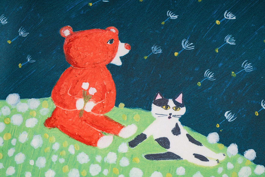 夜のたんぽぽ畑にそよそよと吹く風に乗って、