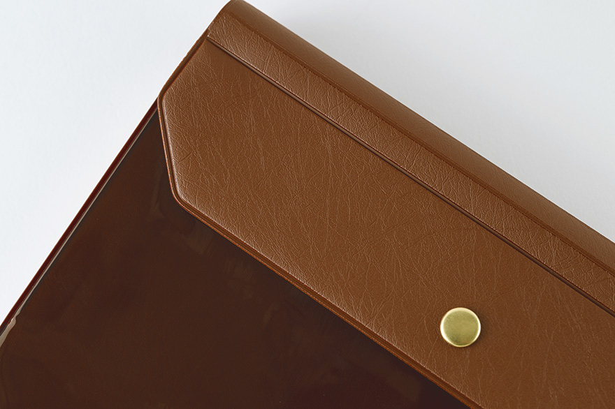 フラップ部分に使用しているブラウンの生地には