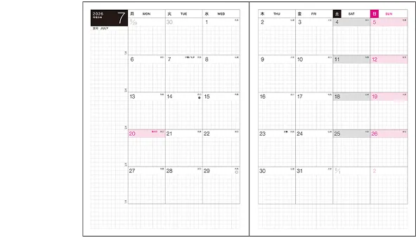 | 週間ダイアリー | 前期:2025年12月29日〜2026年7月5日(全54ページ) 後期:2026年6月29日〜2027年1月3日(全54ページ) |