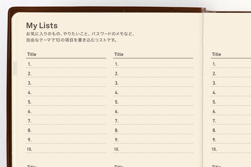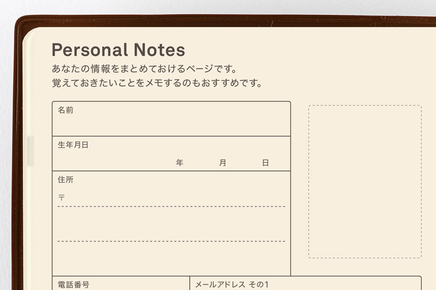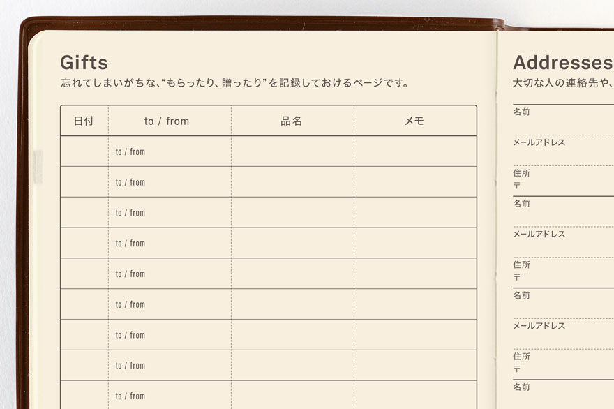 | おまけページ | 1年1ページメモ/Remember This/Gifts/Addresses/My Lists/わたしの好きなもの/Personal Notes |