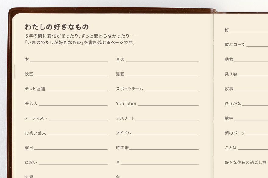 5年分の記録を一冊にまとめられるA6サイズの手帳です。
