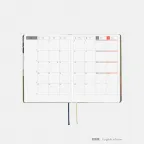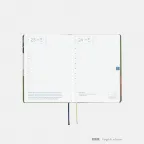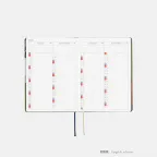 | 1日ページ | 2026年1月1日〜12月31日(全377ページ) *各月のはじめに、その月のことをまとめて書ける扉ページ(1ページ)があります。 *すべてのページに「日々の言葉」を掲載(見開きに1つ)。 *右ページに「ミニカレンダー」を掲載(月曜はじまり)。 *このほか、1日ページのはじめに、自由に使える「Turning the page to a new year」(2ページ)があります。 |
