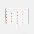 | 1日ページ | 2026年1月1日〜12月31日(全377ページ) *各月のはじめに、その月のことをまとめて書ける扉ページ(1ページ)があります。 *すべてのページに「日々の言葉」を掲載(見開きに1つ)。 *右ページに「ミニカレンダー」を掲載(月曜はじまり)。 *このほか、1日ページのはじめに、自由に使える「Turning the page to a new year」(2ページ)があります。 |