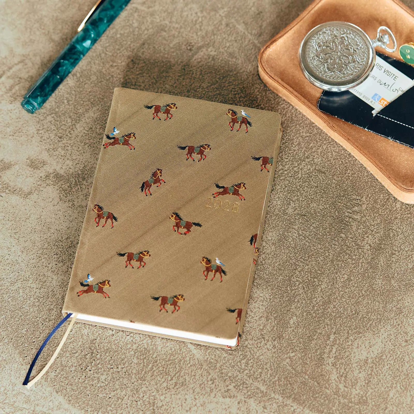 「駆ける馬」の柄では、シックなベージュの表紙に