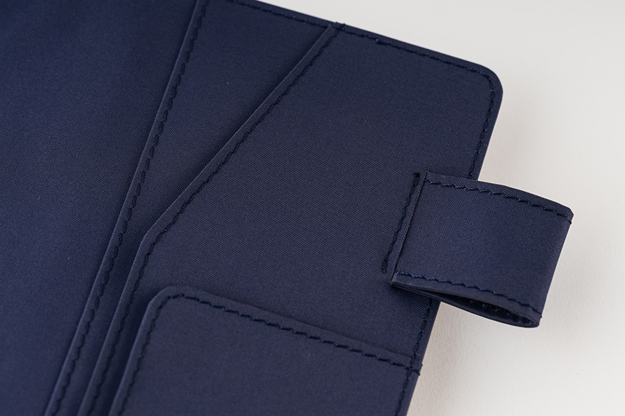 180度平らに開くカバーの構造上、カバー表面の縫製がギャザーのように見えるものもあります。また裏地のたるみがでることがあります。あらかじめご了承ください。