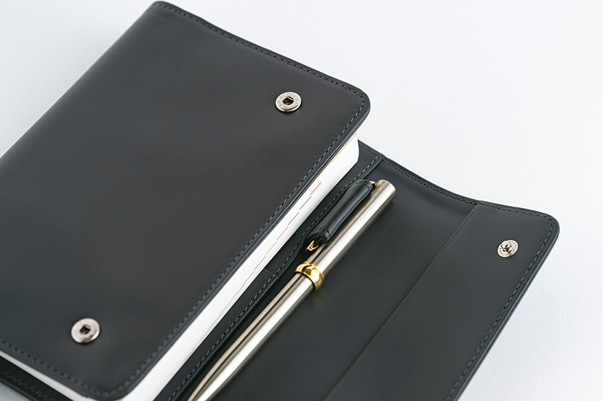 | 紙質・製本 | 薄くて軽く、なめらかな書き心地のトモエリバー(手帳専用紙)/糸かがり製本 |