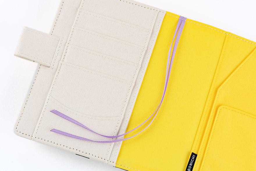 180度平らに開くカバーの構造上、カバー表面の縫製がギャザーのように見えるものもあります。また裏地のたるみがでることがあります。あらかじめご了承ください。