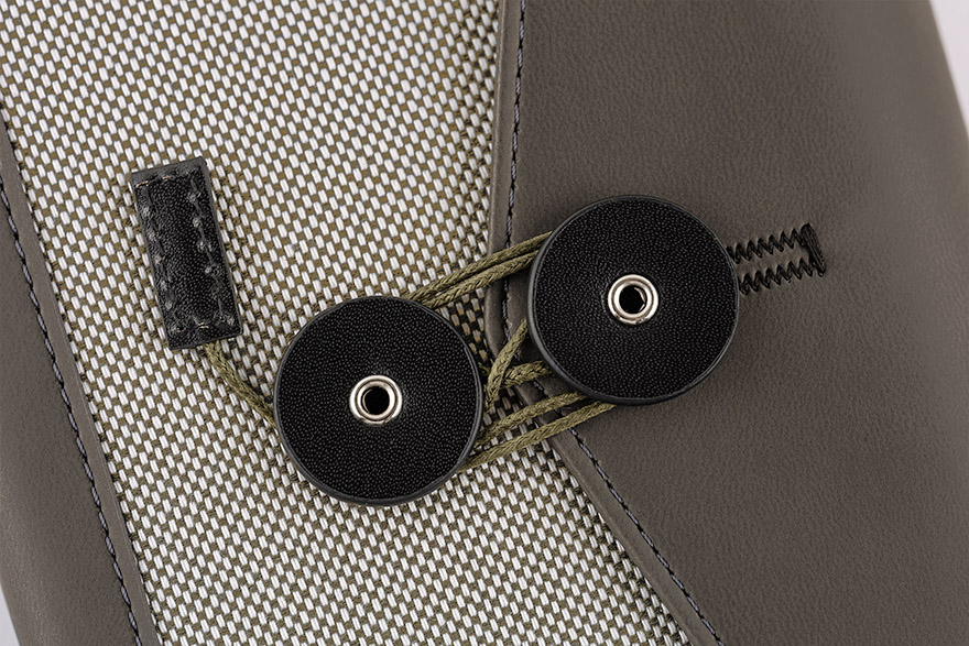 深みのあるスモーキーグレーのポリウレタン素材と、