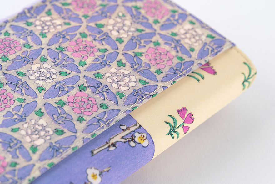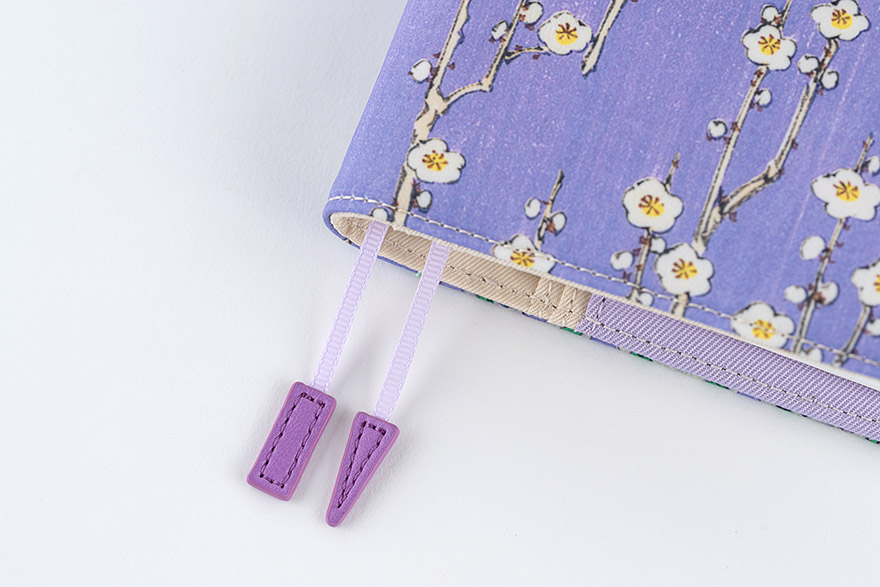 バタフライストッパー、内側のポケット、しおりは薄紫色。