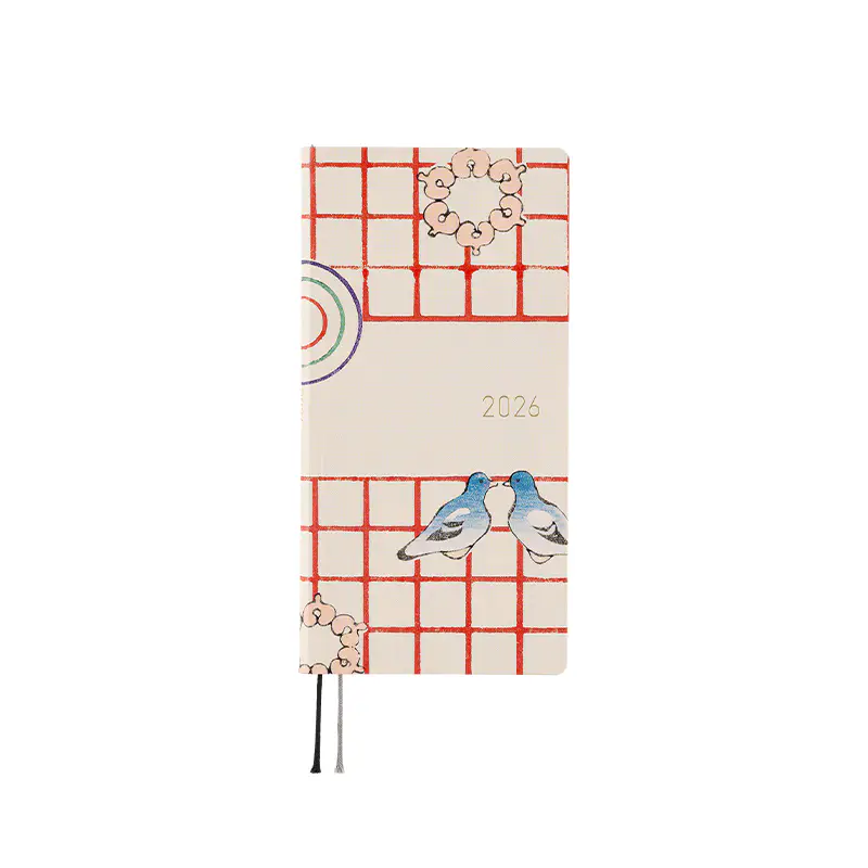 | 1日ページ | 前期 : 2026年1月1日〜6月30日(全187ページ) 後期 : 2026年7月1日〜12月31日(全190ページ) *各月のはじめに、「ことしの歳時記」と、その月のことをまとめて書ける扉ページ(1ページ)があります。 *すべてのページに「日々の言葉」を掲載。 *右ページに「ミニカレンダー」を掲載(月曜はじまり)。 *このほか、1日ページのはじめに、自由に使える「Turning the page to a new year」(前期:2ページ、後期:3ページ)があります。 |