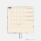 | 記載される内容 | 週番号/六曜(大安、仏滅など)/二十四節気(立春、春分、夏至など)/祝日、記念日など(聖バレンタインデー、ひな祭り、母の日、父の日など)/月の満ち欠け(週間ページ全てに記載・月間カレンダーに満月と新月のみ記載) |