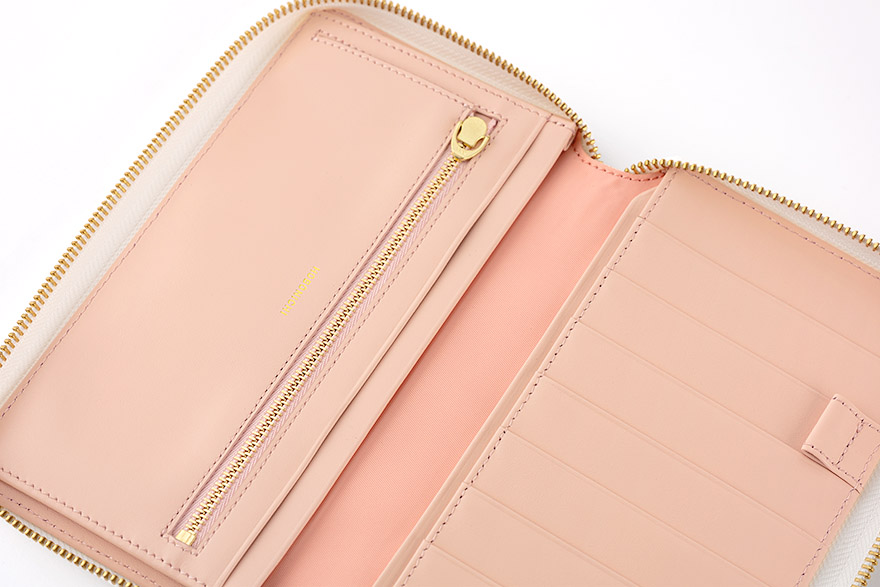 内側にもおなじペールピンクの革を使い、