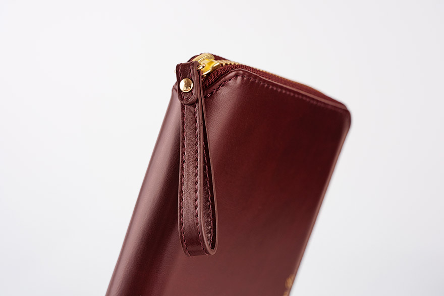 180度平らに開くカバーの構造上、カバー表面の縫製がギャザーのように見えるものもあります。また裏地のたるみがでることがあります。あらかじめご了承ください。