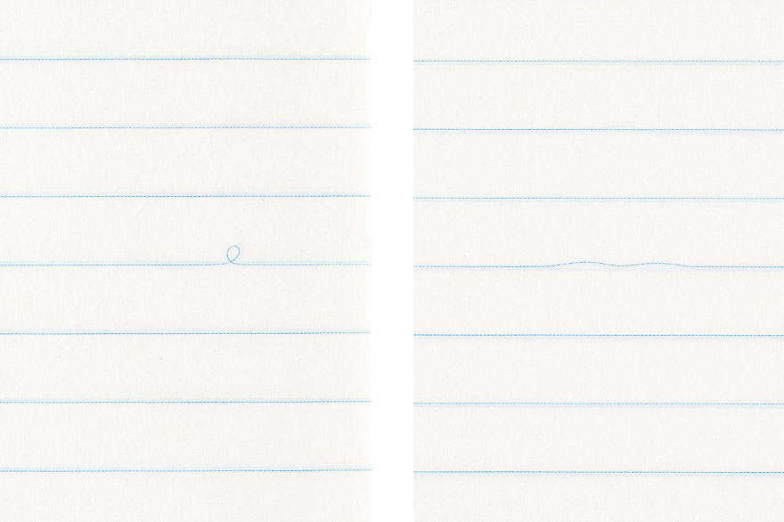 あらかじめ目立たない場所で試し書きいただくか、下敷き、吸い取り紙のご使用をおすすめいたします。