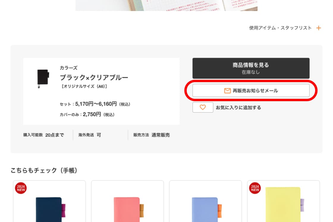 文房や雑貨といった商品には再販売お知らせメールはありません。