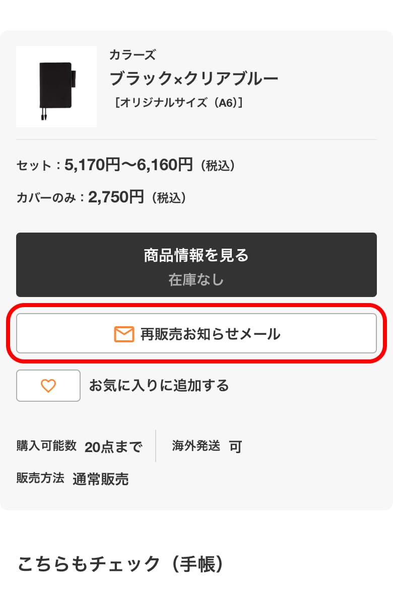 「再販売お知らせメール」にご登録いただくと、