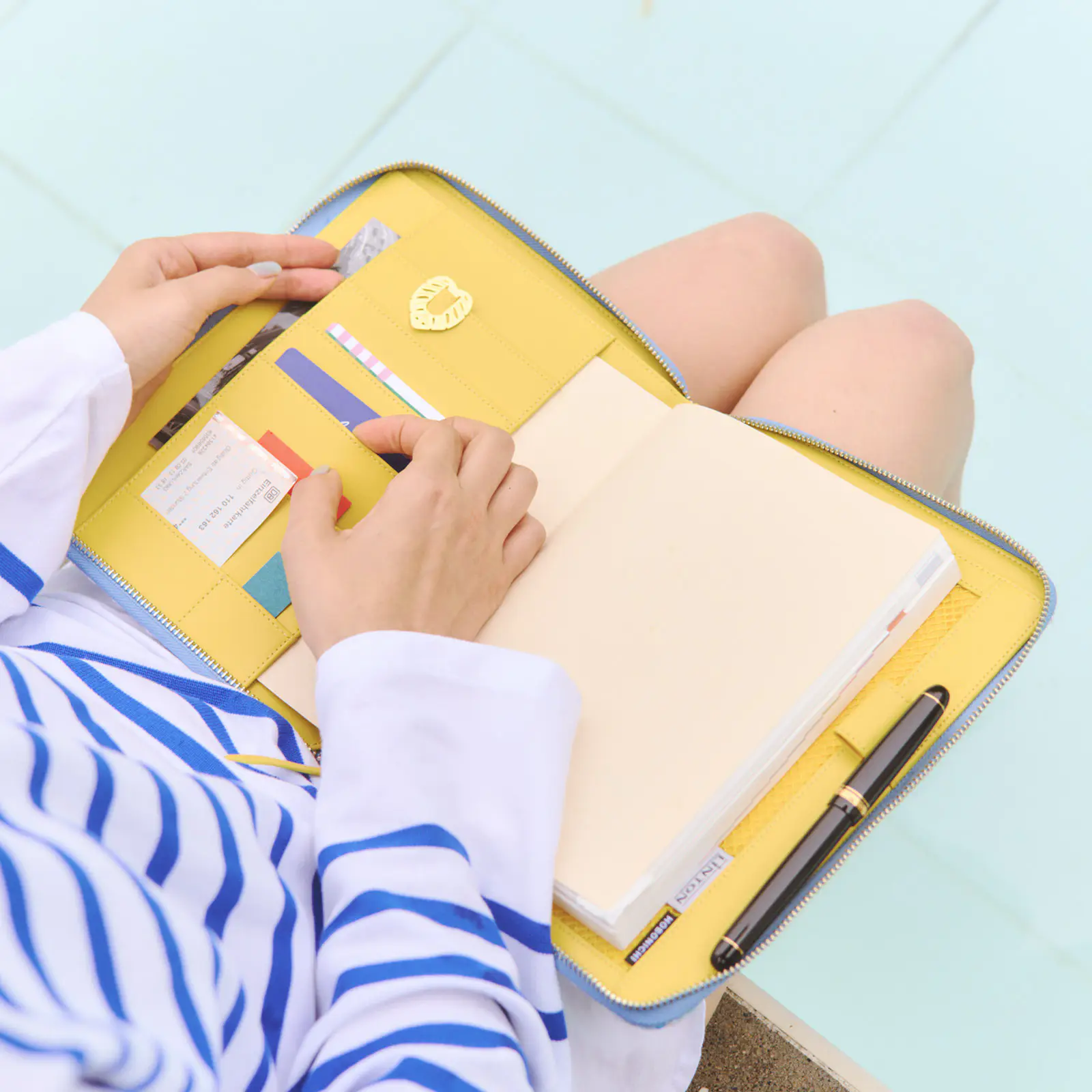 内側は、引き手と同じあざやかな黄色の革。