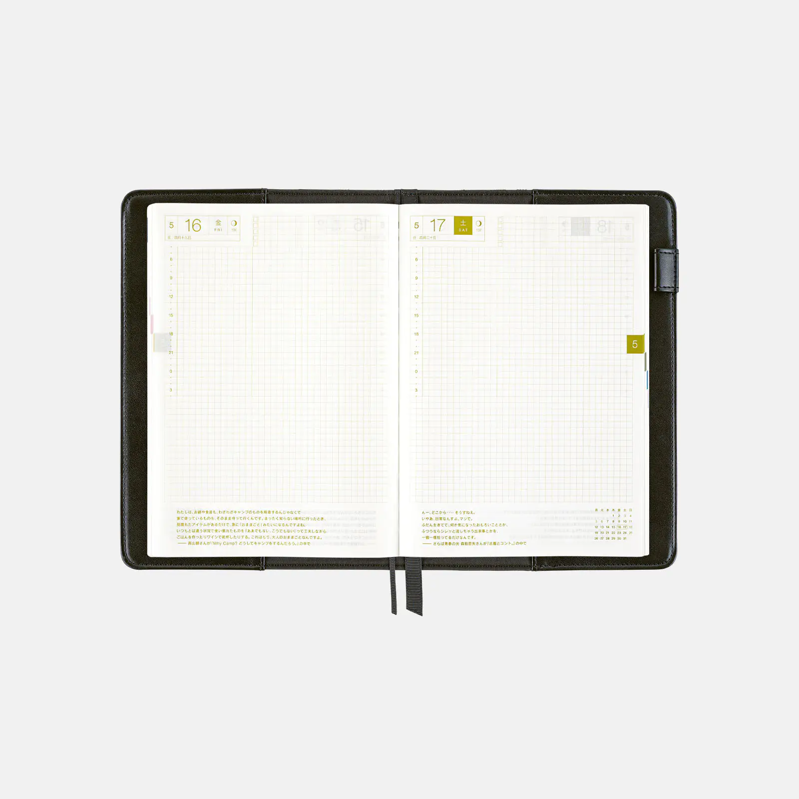 | 記載される内容 | 日番号/週番号(月間カレンダー・週間ダイアリーに記載)/月の満ち欠け(1日ページ全ページに記載、月間カレンダー・週間ダイアリーに満月と新月のみ記載) |
