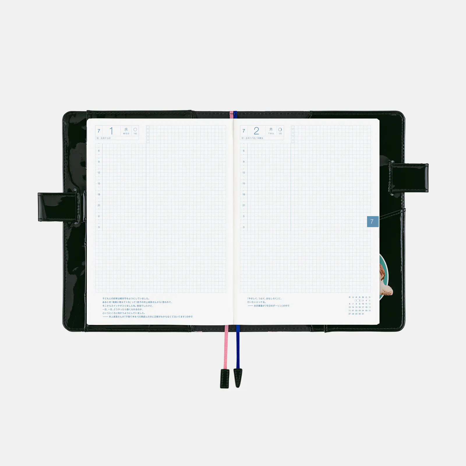 | 紙質・製本 | 薄くて軽く、なめらかな書き心地のトモエリバー(手帳専用紙)/糸かがり製本 |