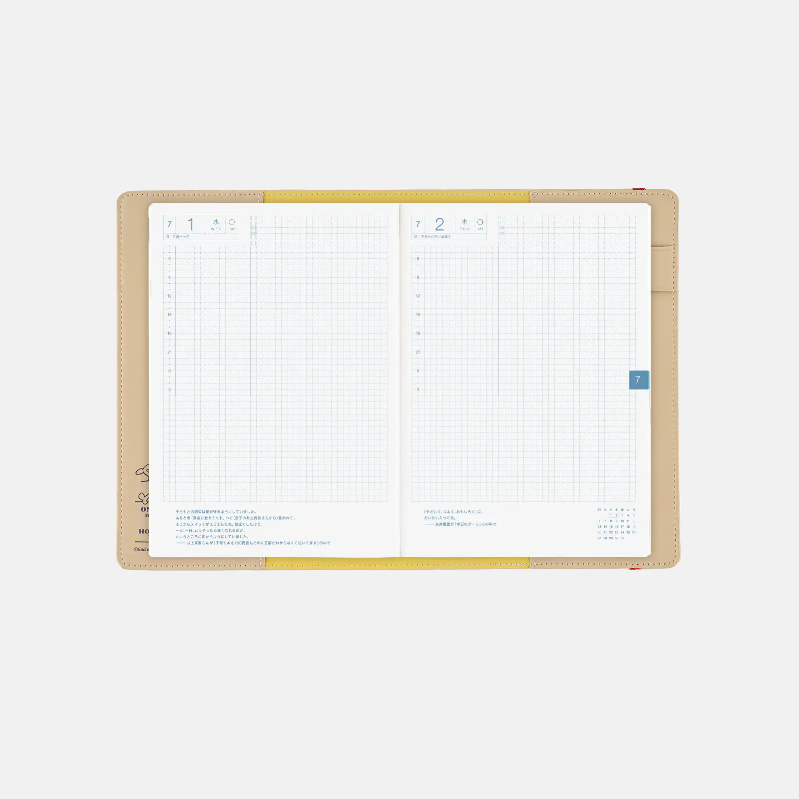 1日のスペースが広く、のびのびと書けるA5サイズ。家や仕事場に置いておく「置き手帳」や育児日記、交換日記といった用途にもおすすめです。