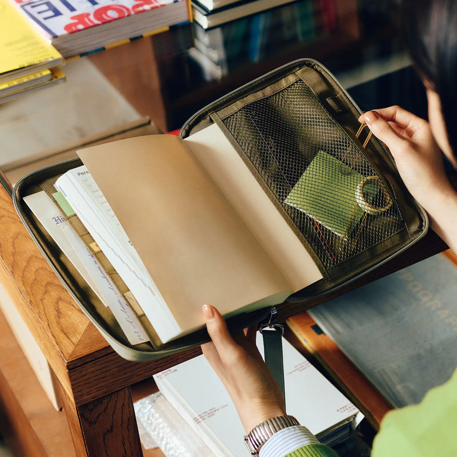 たとえば、手帳と厚みのあるノートなどを