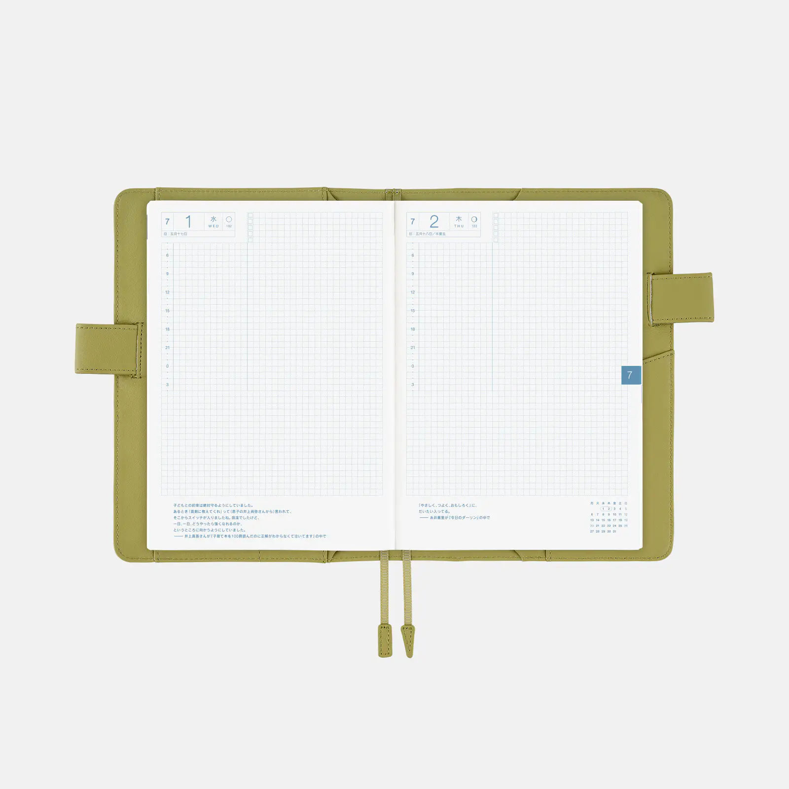 | 1日ページ | 前期 : 2026年1月1日〜6月30日(全187ページ) 後期 : 2026年7月1日〜12月31日(全190ページ) *各月のはじめに、「ことしの歳時記」と、その月のことをまとめて書ける扉ページ(1ページ)があります。 *すべてのページに「日々の言葉」を掲載。 *右ページに「ミニカレンダー」を掲載(月曜はじまり)。 *このほか、1日ページのはじめに、自由に使える「Turning the page to a new year」(前期:2ページ、後期:3ページ)があります。 |