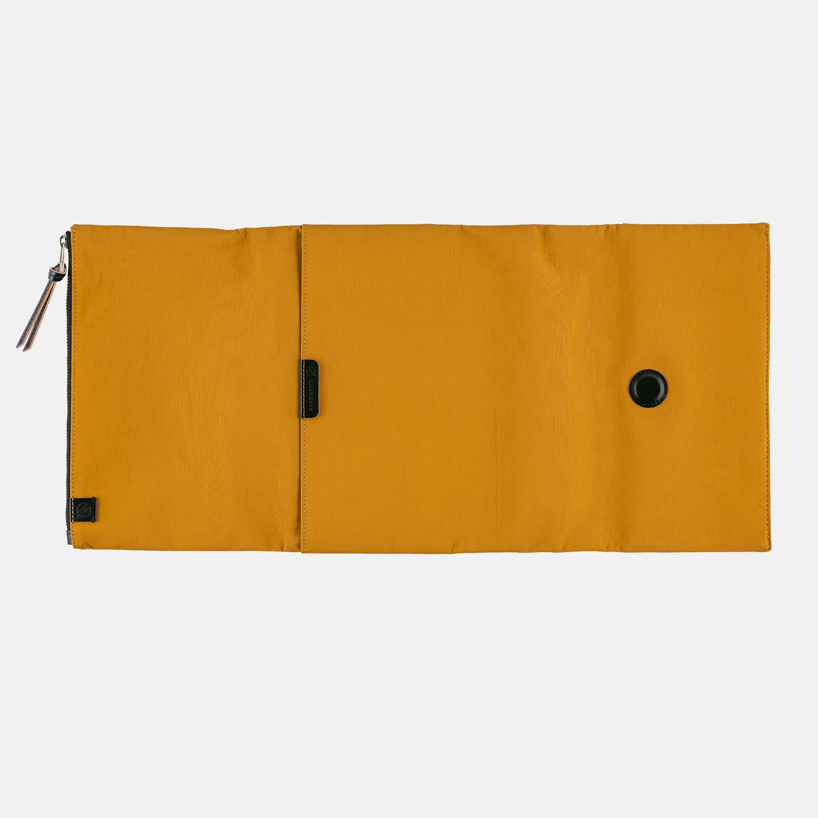 表のポケットには、レザーの引き手がついています。