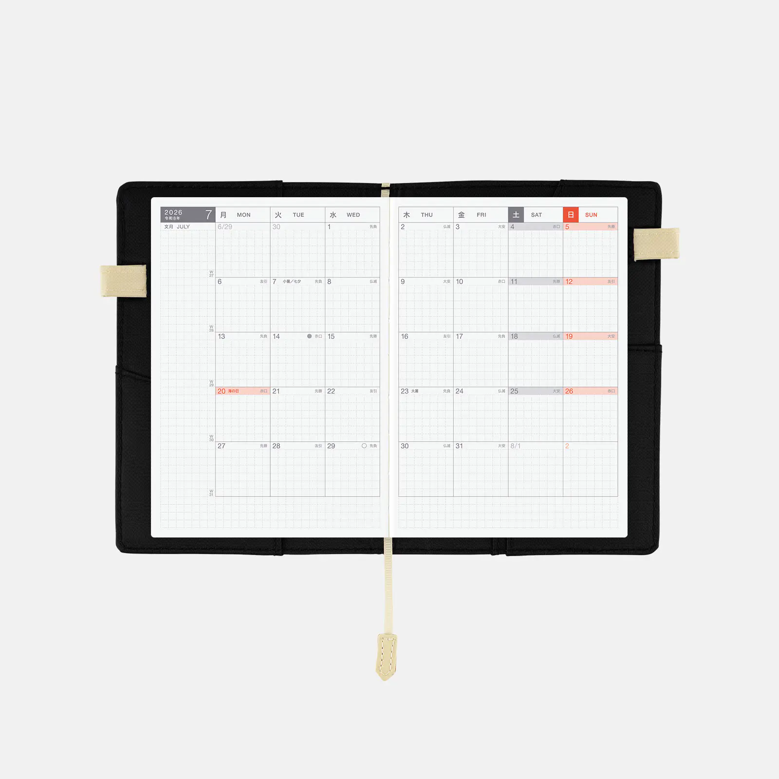 | 紙質・製本 | 薄くて軽く、なめらかな書き心地のトモエリバー(手帳専用紙)/糸かがり製本 |