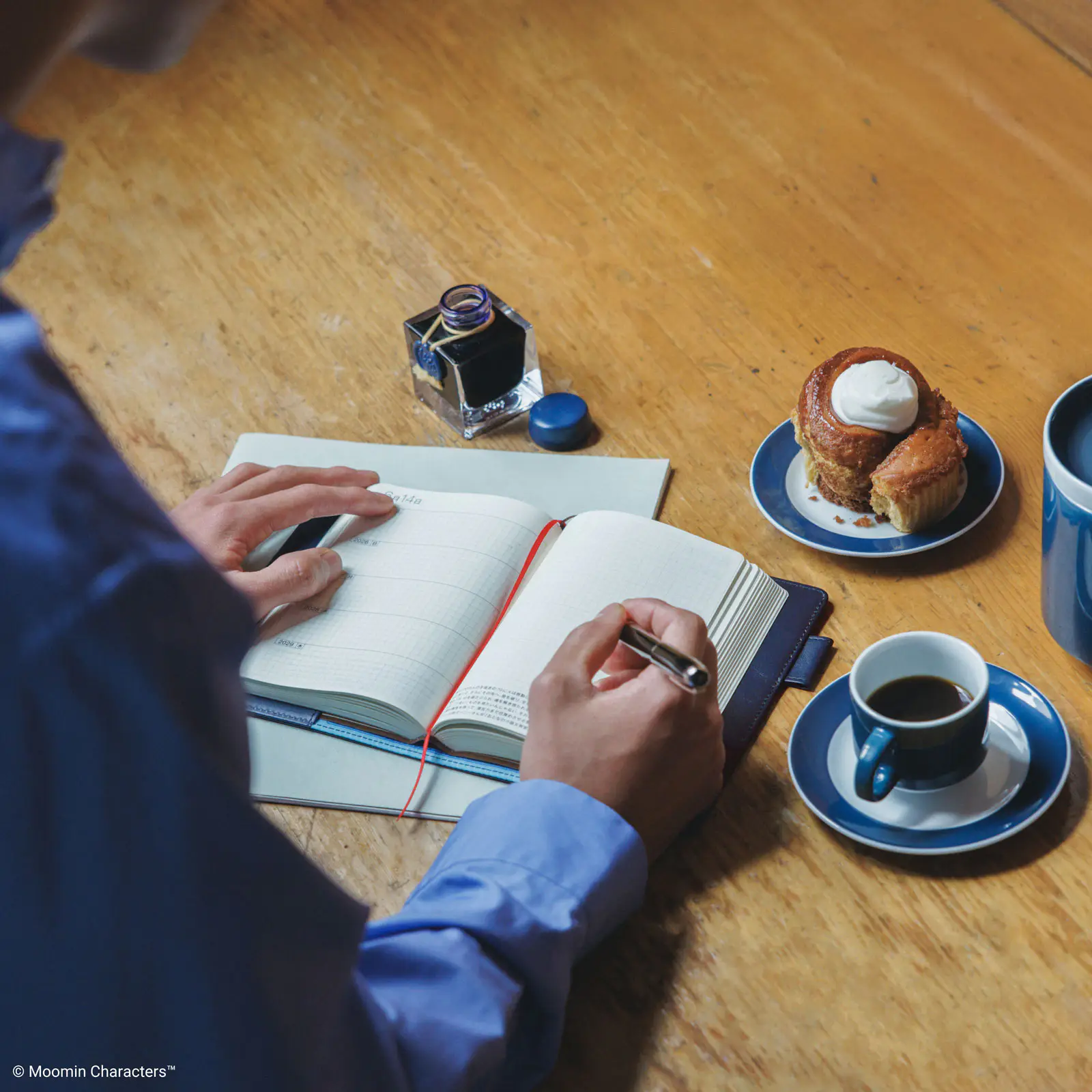 見開きに5年分の同じ月日の記録をつけることができる、用紙A6サイズのコンパクトな5年手帳。方眼ベースのレイアウト、180度パタンと開く造本、日々の言葉など、ほぼ日手帳の特長を受け継いでいます。