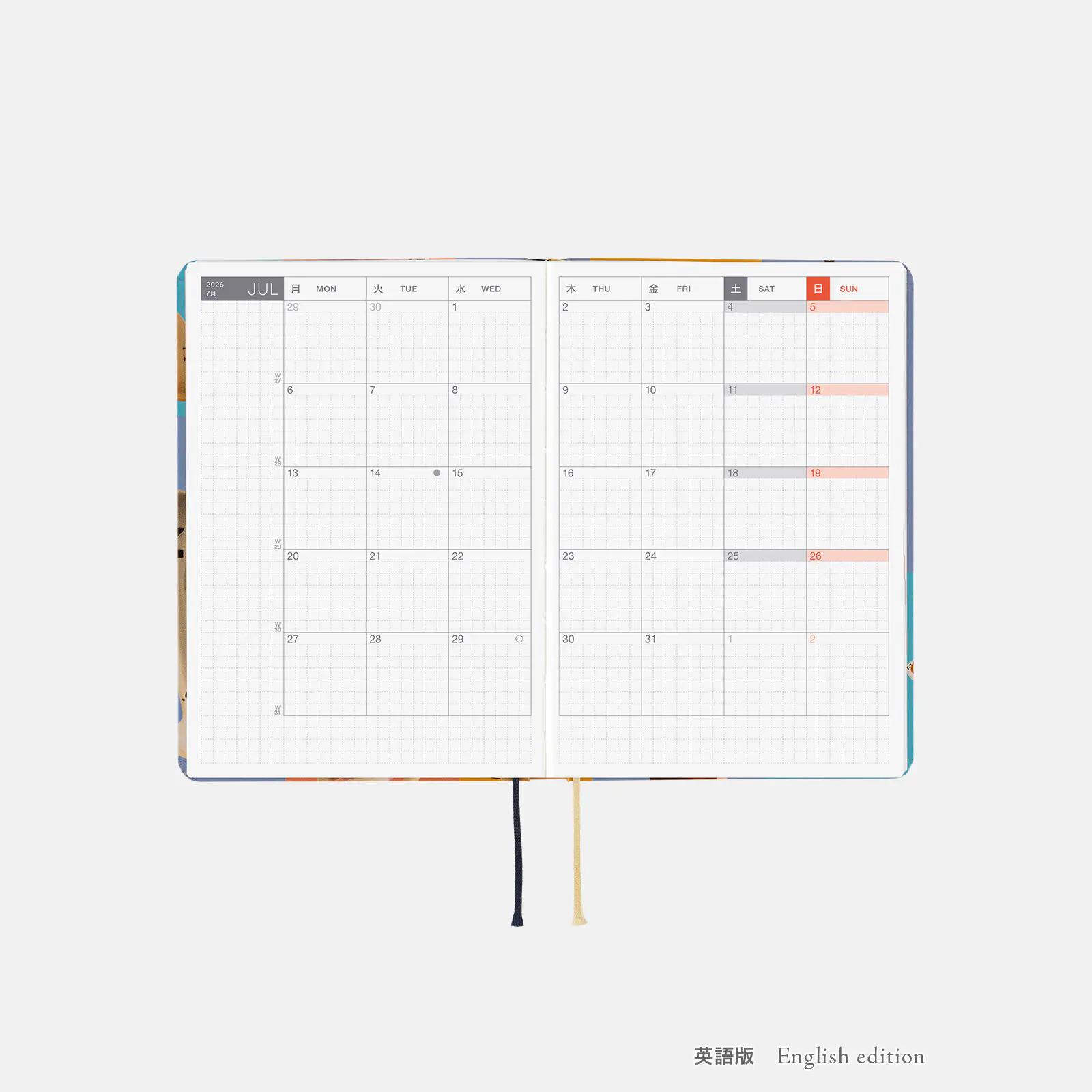 | 1日ページ | 2026年1月1日〜12月31日(全377ページ ) *各月のはじめに、「ことしの歳時記」と、その月のことをまとめて書ける扉ページ(1ページ)があります。 *すべてのページに「日々の言葉」を掲載。 *右ページに「ミニカレンダー」を掲載(月曜もしくは日曜はじまり)。 *このほか、1日ページのはじめに、自由に使える「Turning the page to a new year」(2ページ)があります。 |