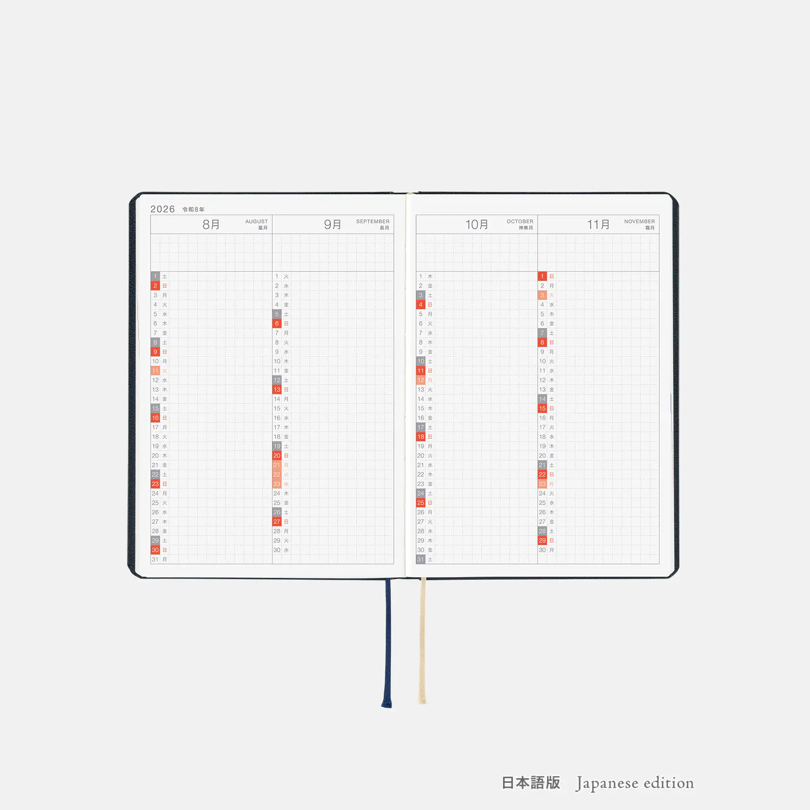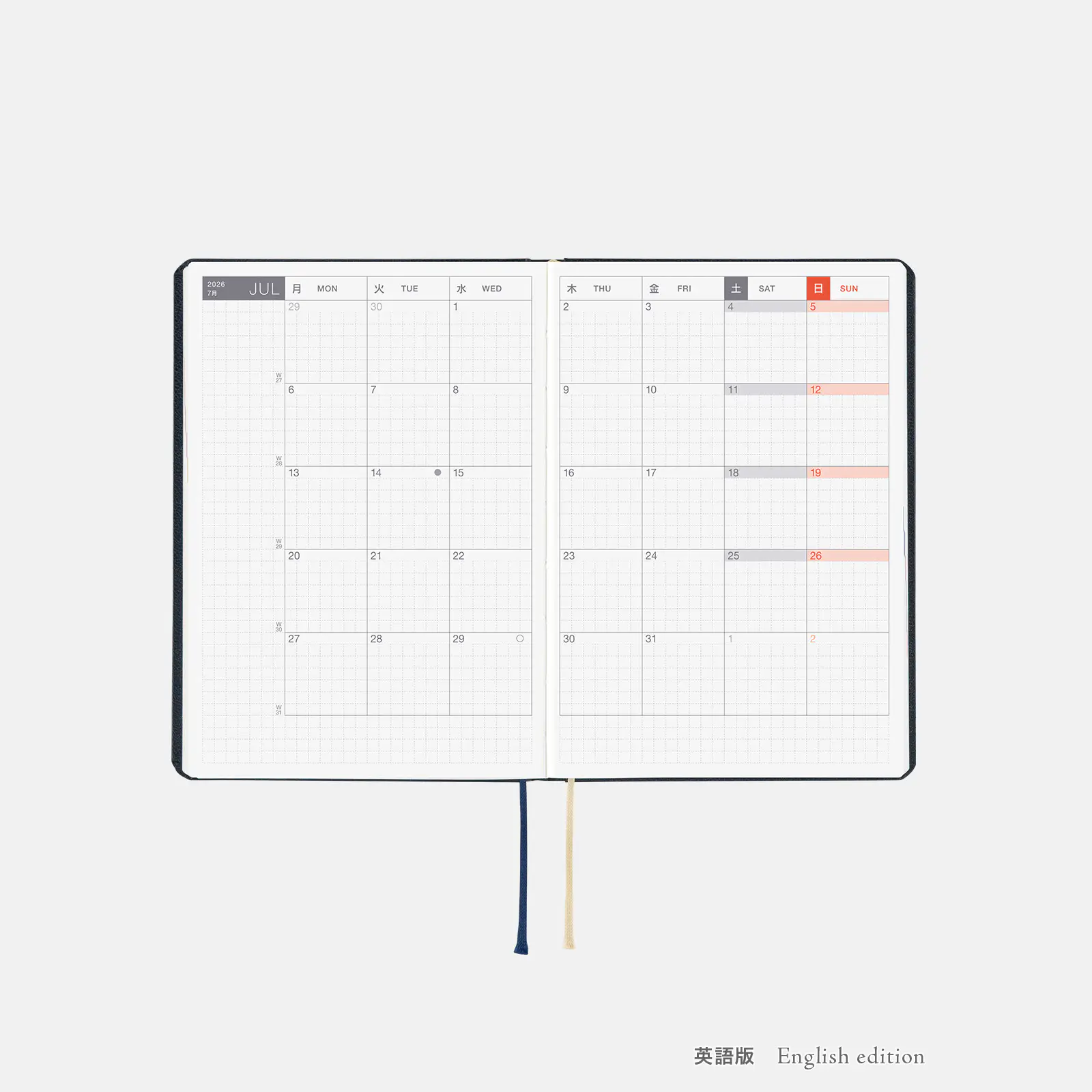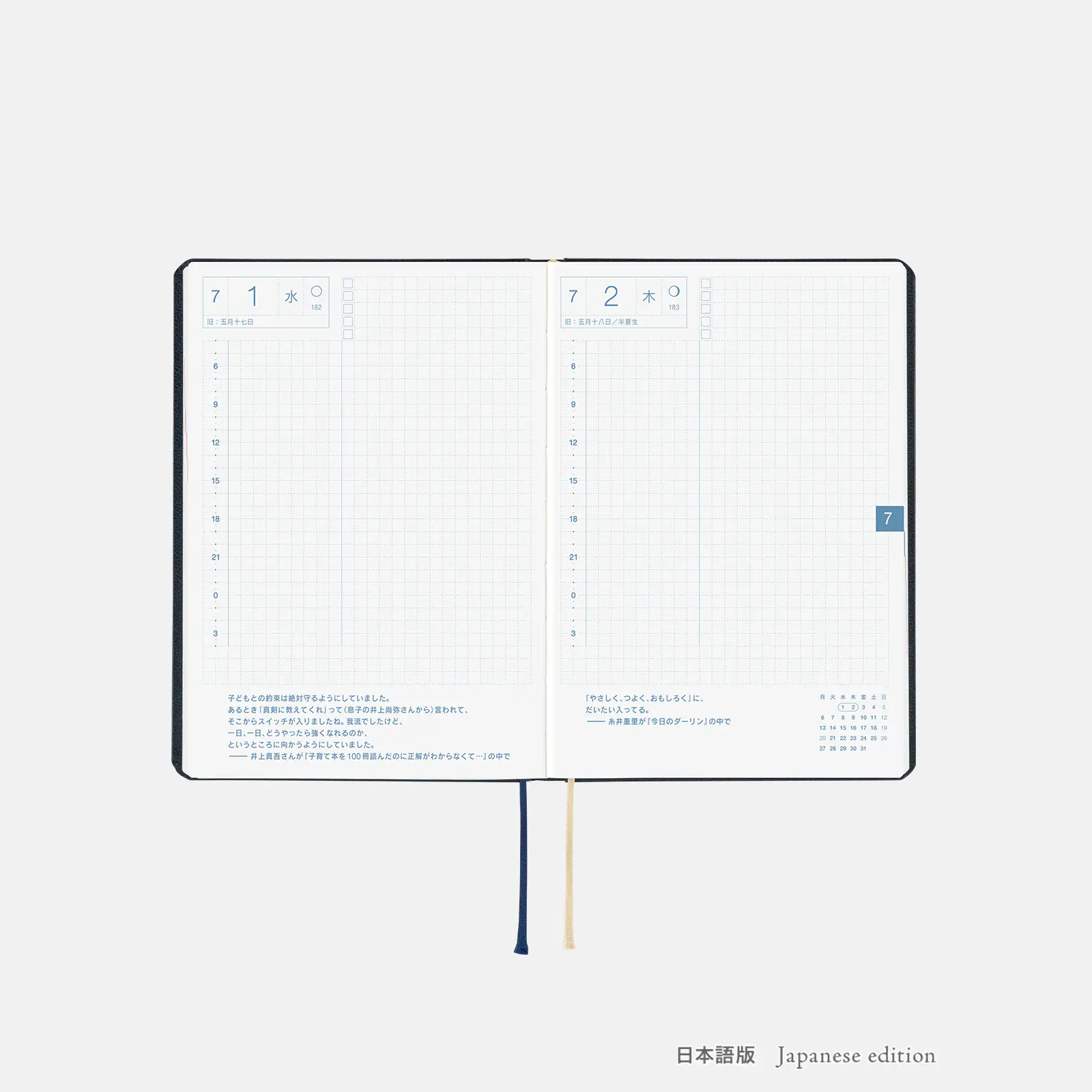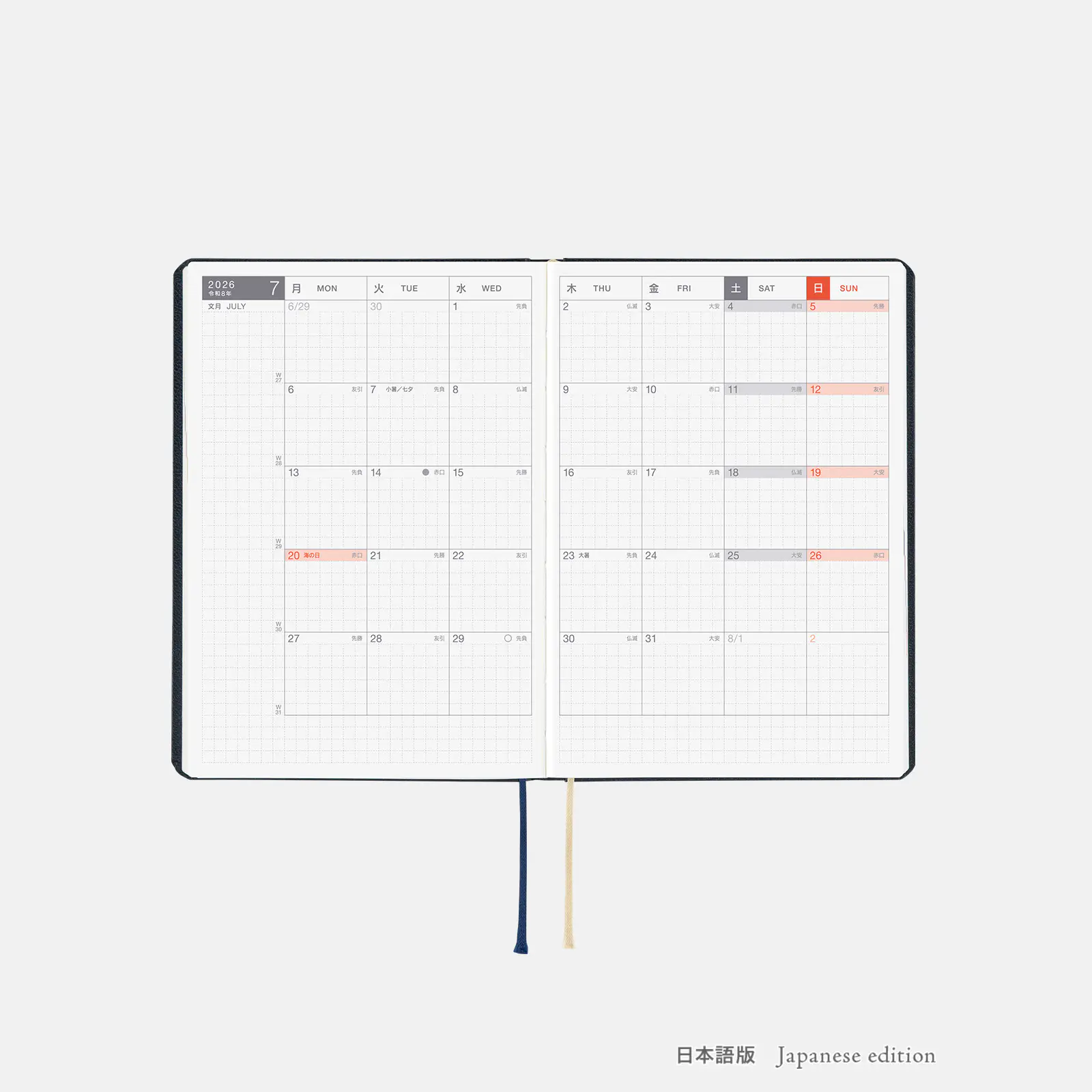 *右ページに「ミニカレンダー」を掲載(月曜はじまり)。