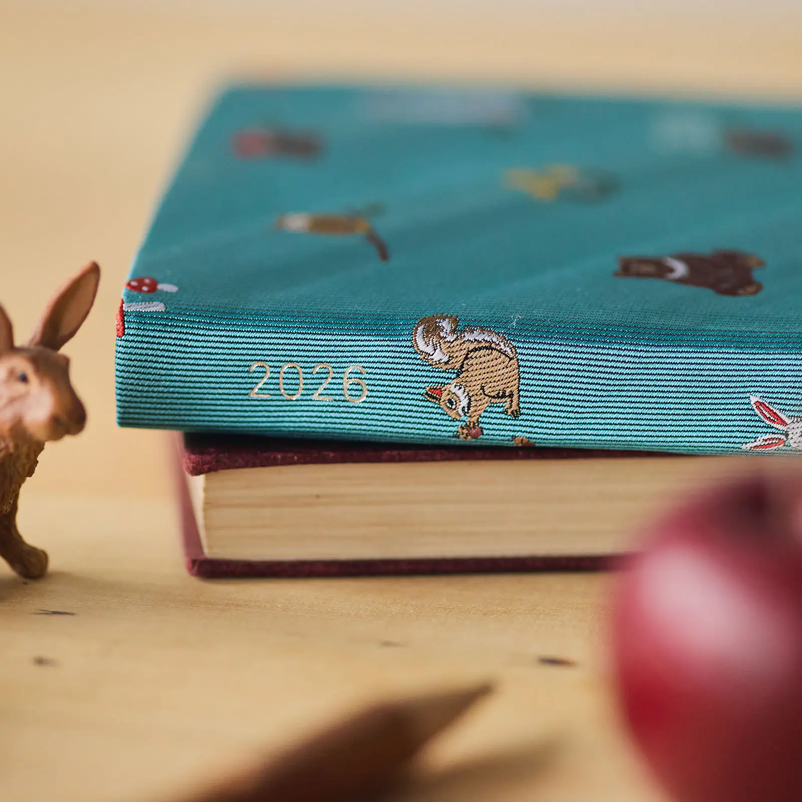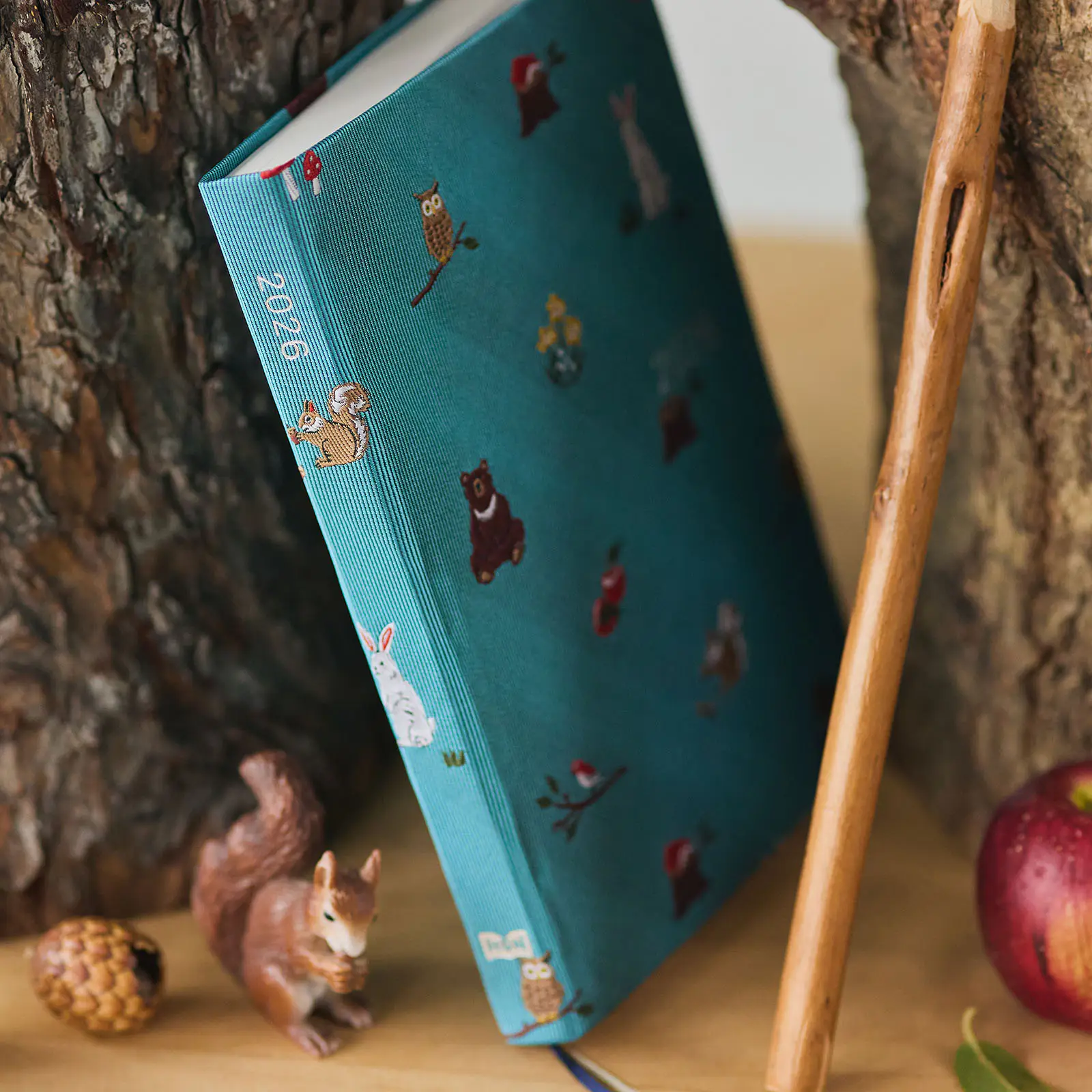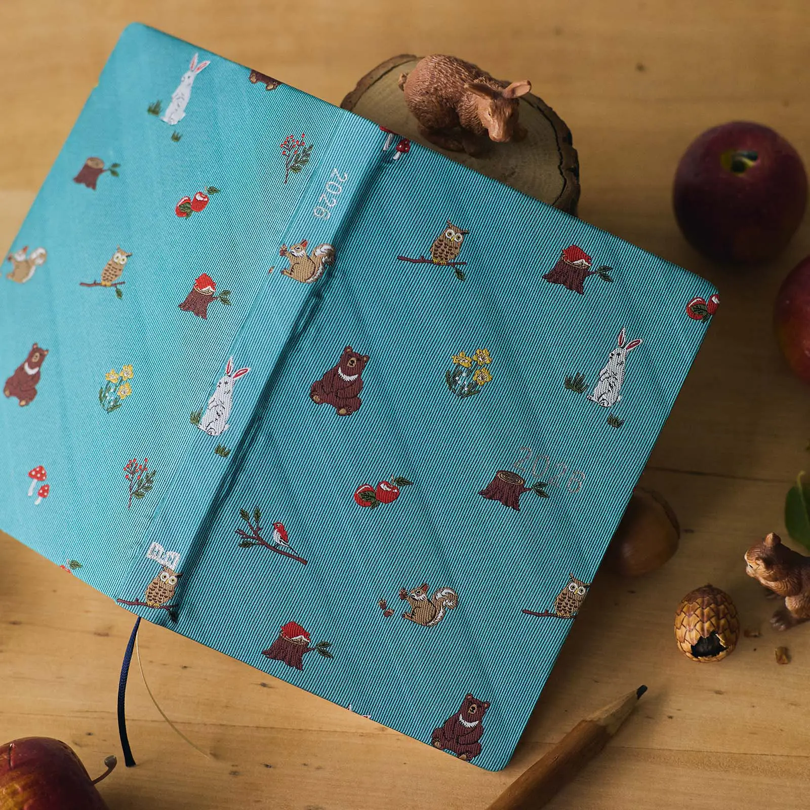 「in the forest」の柄では、くすみのあるブルーの表紙に