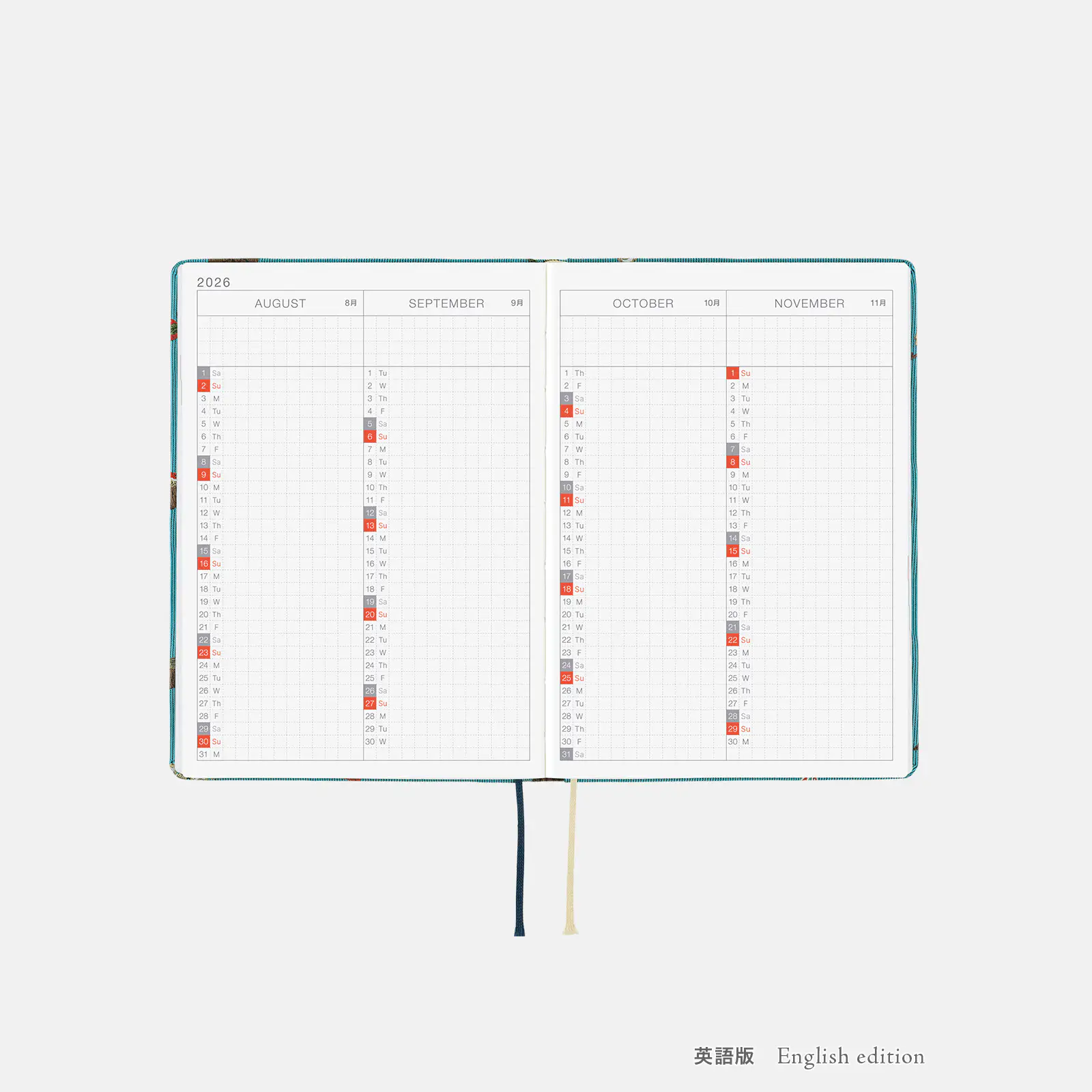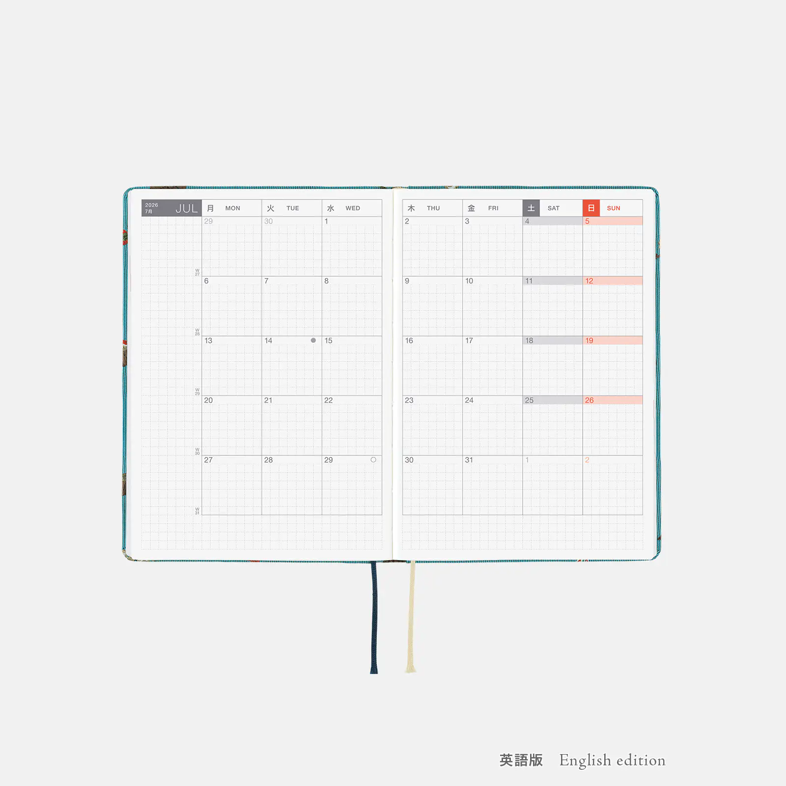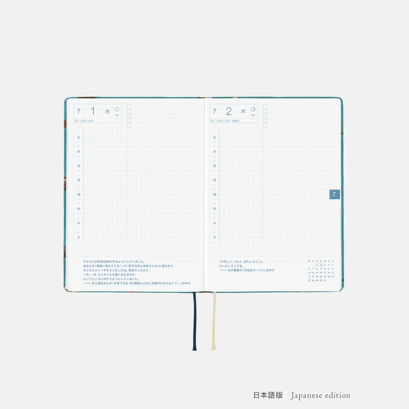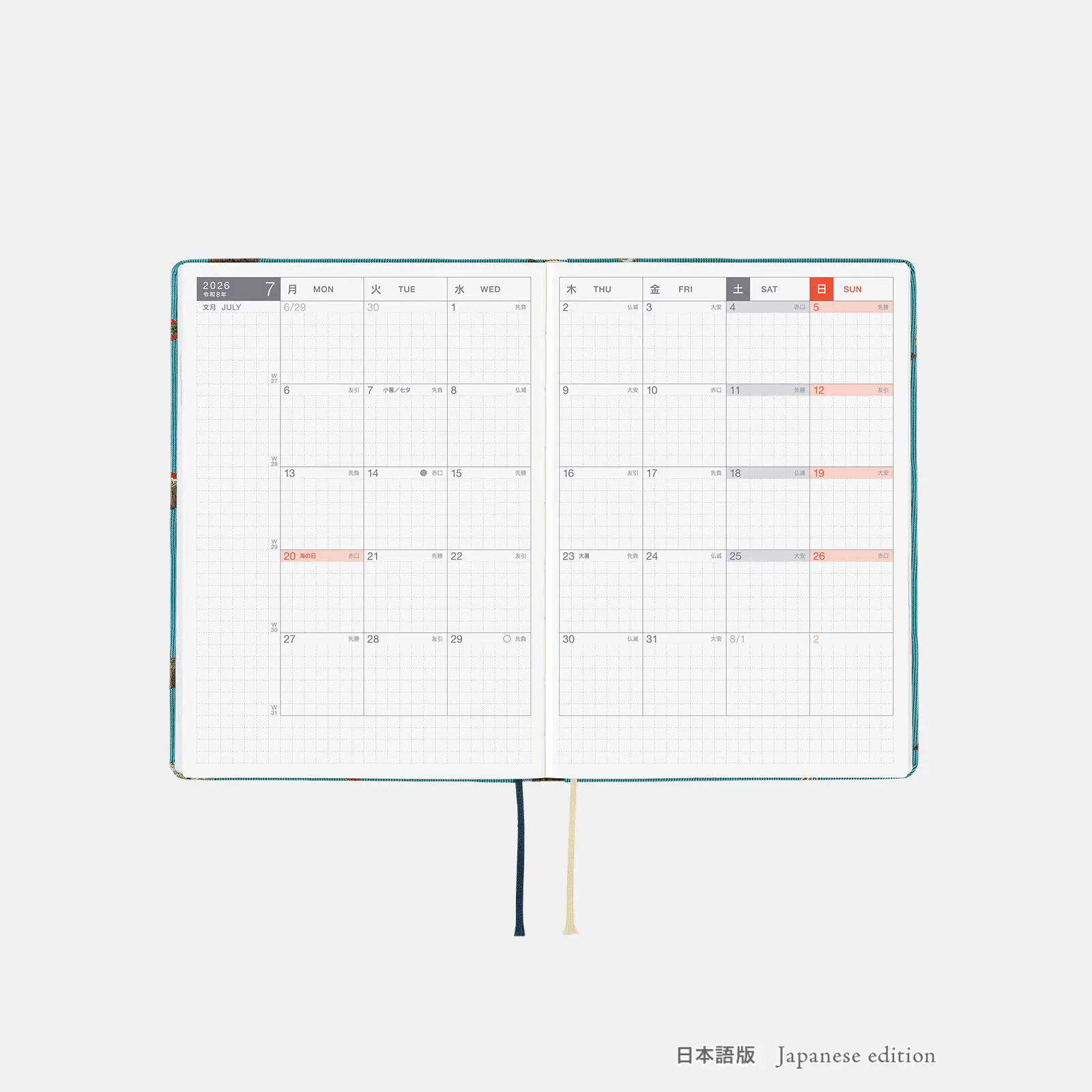 *右ページに「ミニカレンダー」を掲載(月曜はじまり)。