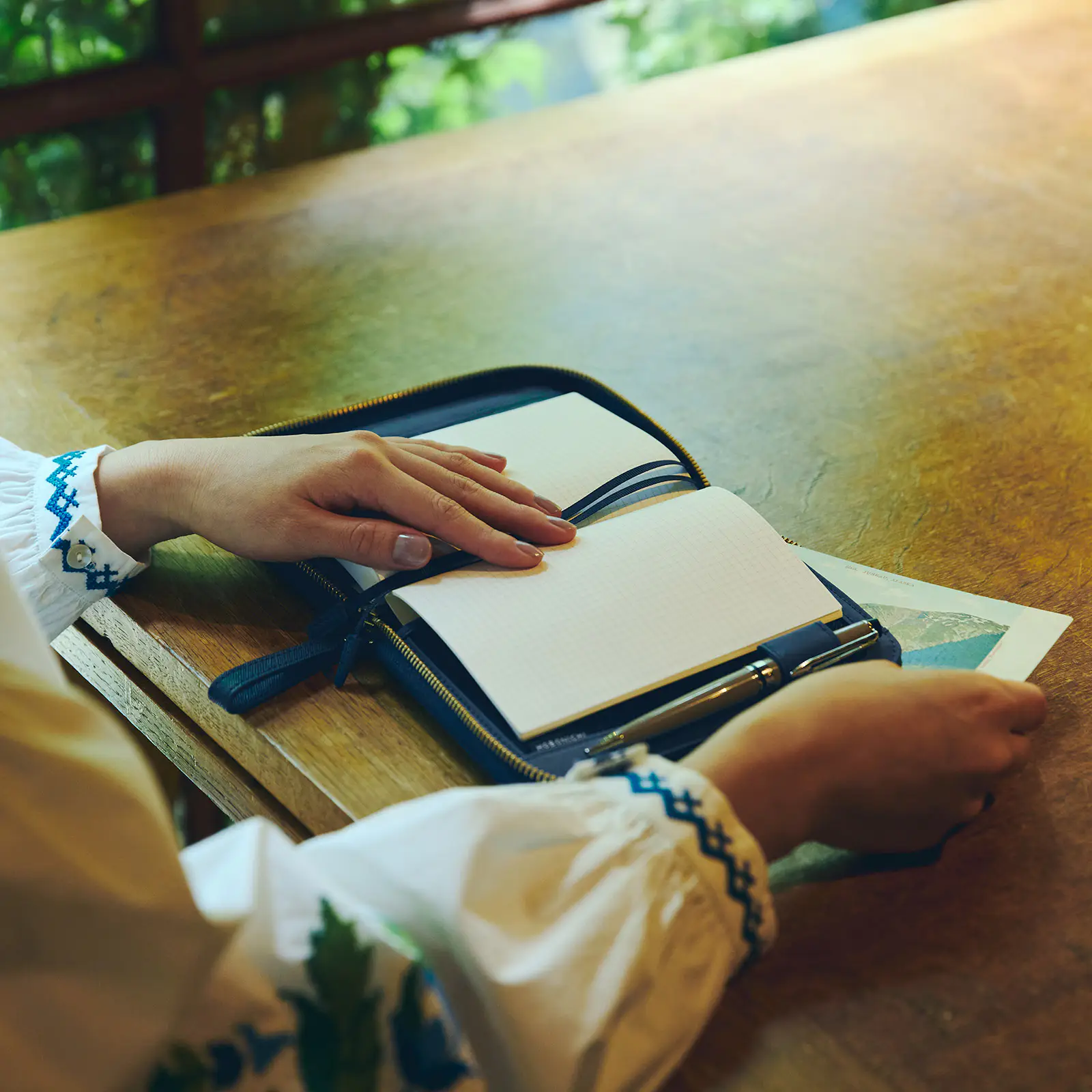 巻頭には月間(マンスリー)のカレンダー、残りは方眼ノートページの手帳。日付にとらわれず、書きたいときに好きなだけ書ける自由度の高い手帳です。