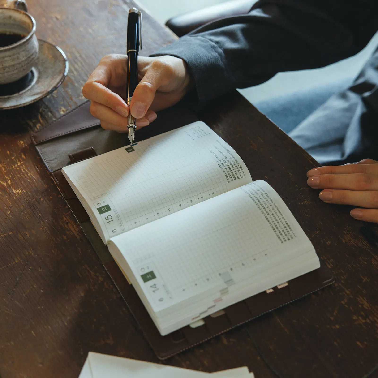 | 紙質・製本 | 薄くて軽く、なめらかな書き心地のトモエリバー(手帳専用紙)/糸かがり製本 |