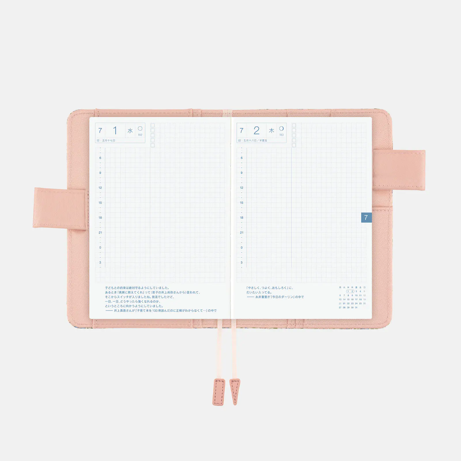*右ページに「ミニカレンダー」を掲載(月曜はじまり)。