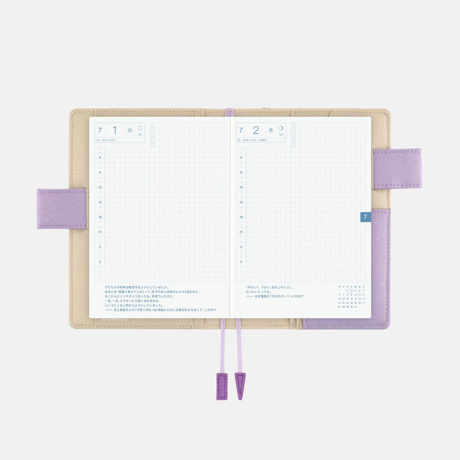 | 1日ページ | 前期 : 2026年1月1日〜6月30日(全187ページ) 後期 : 2026年7月1日〜12月31日(全190ページ) *各月のはじめに、「ことしの歳時記」と、その月のことをまとめて書ける扉ページ(1ページ)があります。 *すべてのページに「日々の言葉」を掲載。 *右ページに「ミニカレンダー」を掲載(月曜はじまり)。 *このほか、1日ページのはじめに、自由に使える「Turning the page to a new year」(前期:2ページ、後期:3ページ)があります。 |