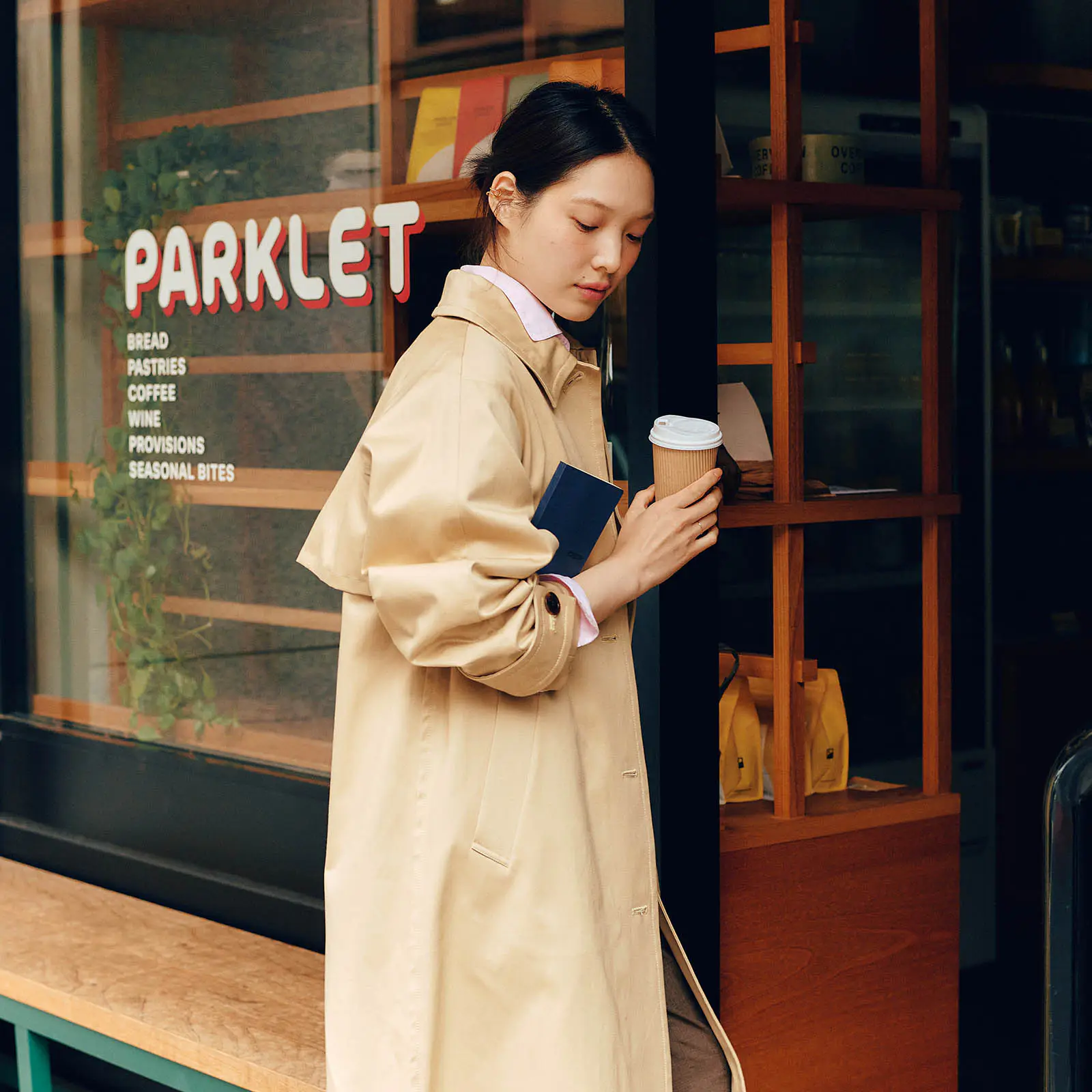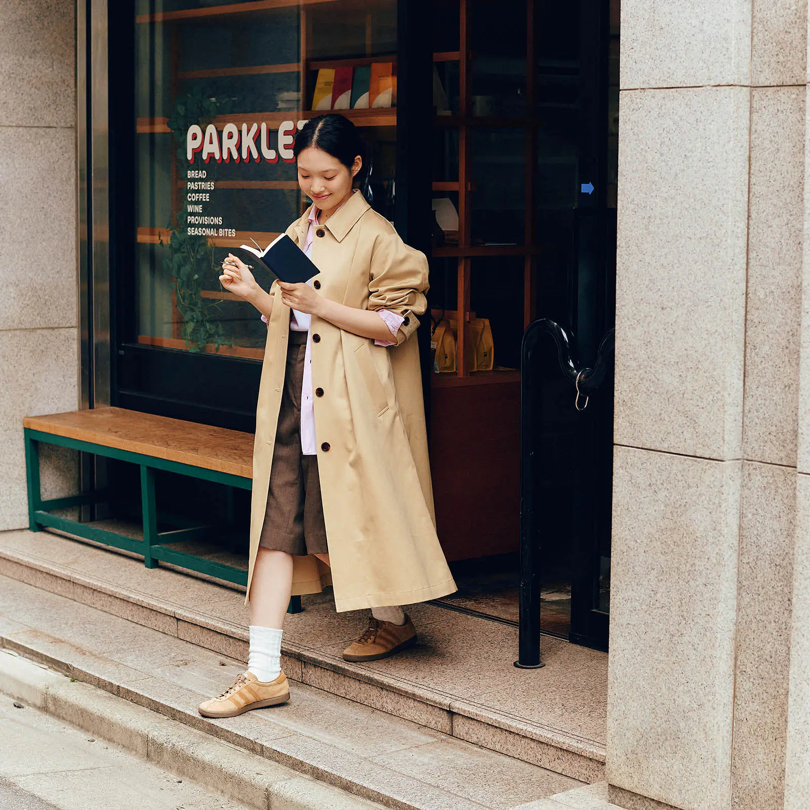 ステンカラーコート ¥37,400(チャイルドウーマン/オクモ:03-3481-8121)、その他スタイリスト私物