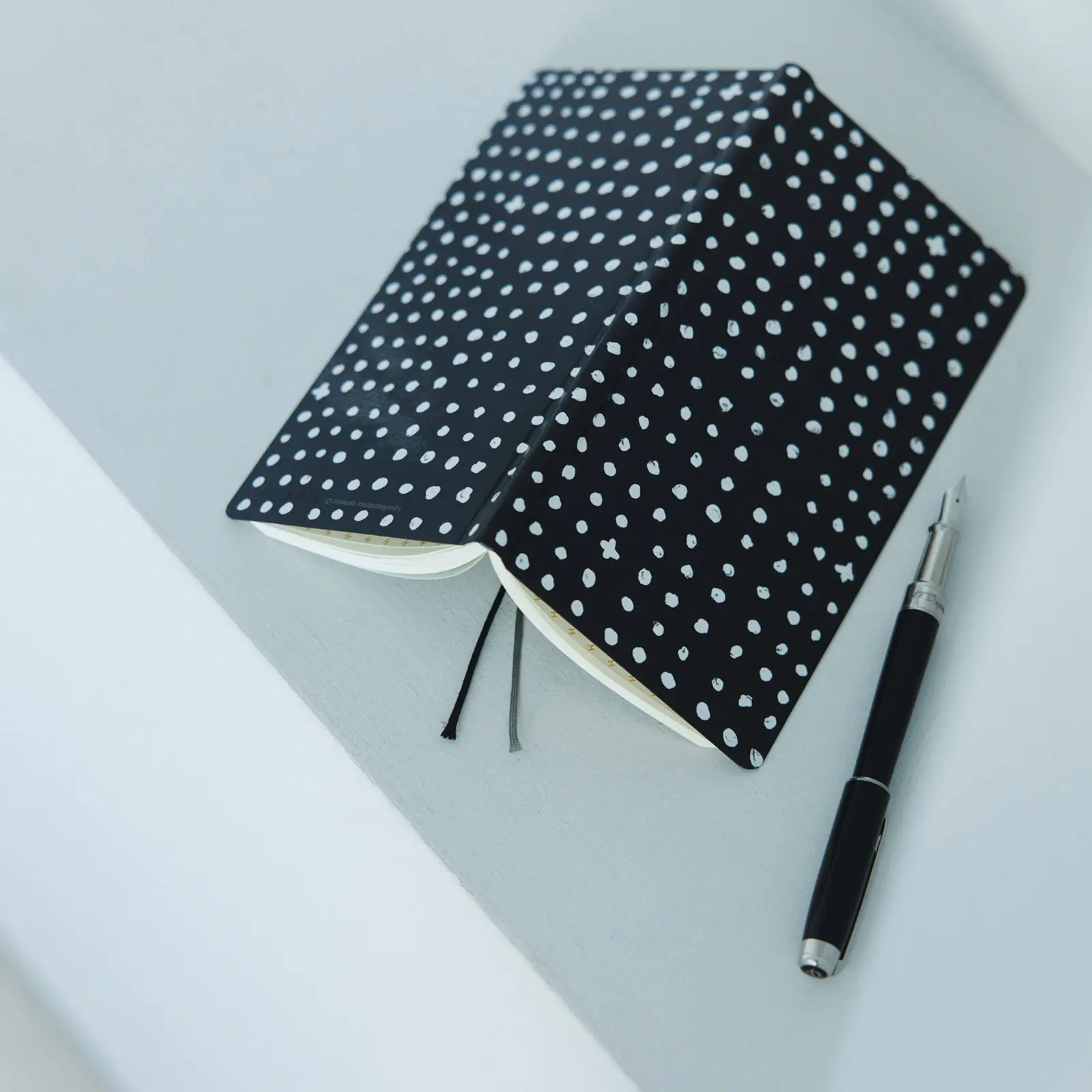 「トモエリバー(手帳用)」の紙は、薄く、なめらかな書き心地が特徴です。ただし、ご使用のペンやインクの種類・量、使用環境によってはにじみや裏うつりが出たり、乾きにくいことがあります。