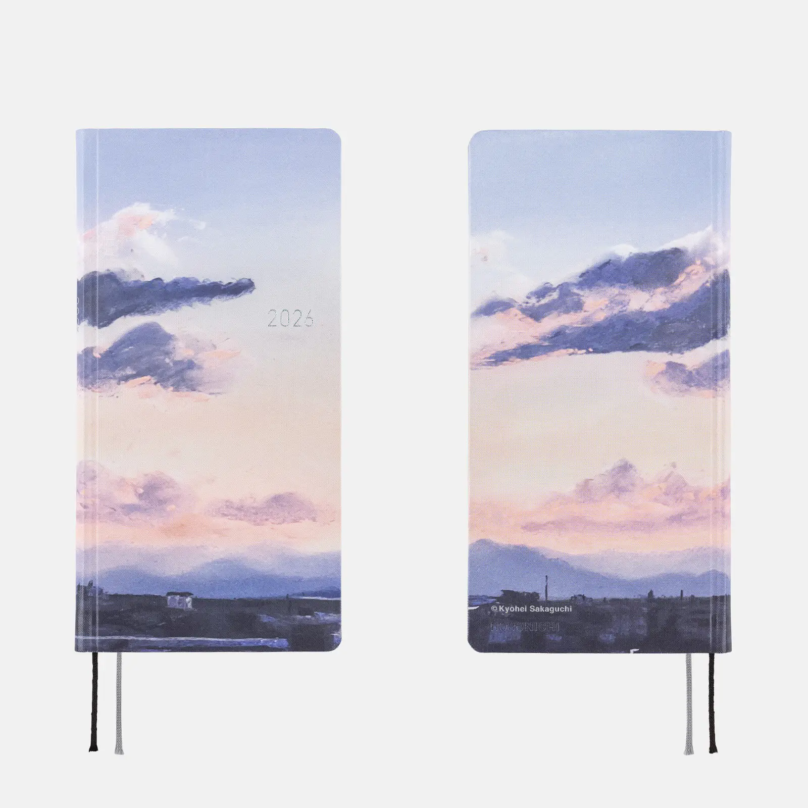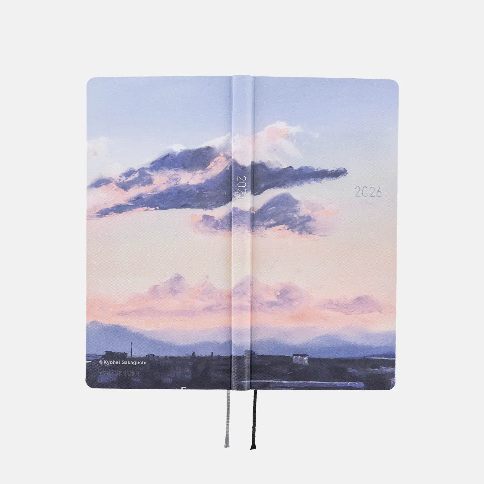 A5サイズの横開き、中面の方眼は空の色に寄せた水色で、