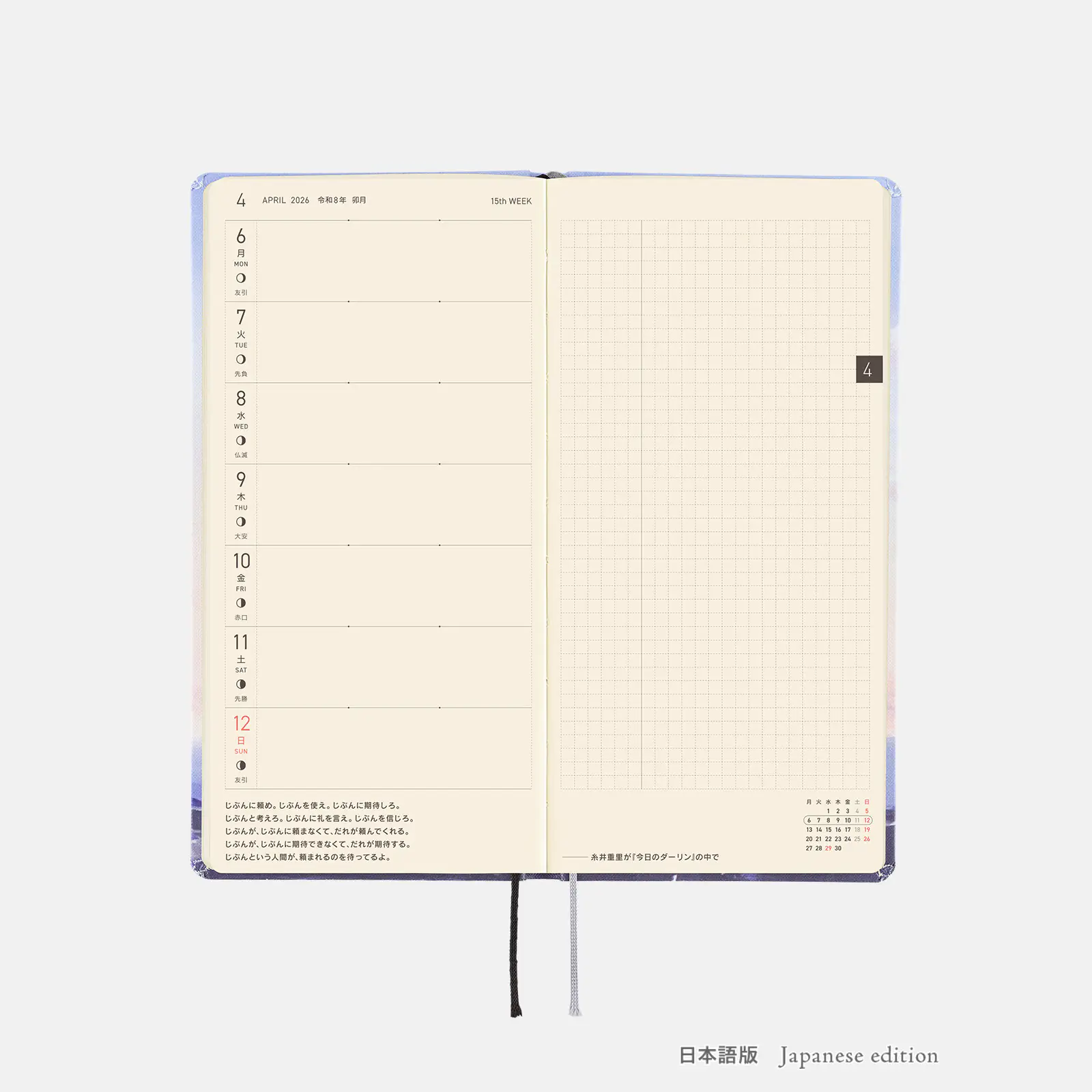 | 週間ダイアリー | 2025年12月1日〜2027年1月3日(全114ページ) *週に1つ「日々の言葉」を掲載。 |