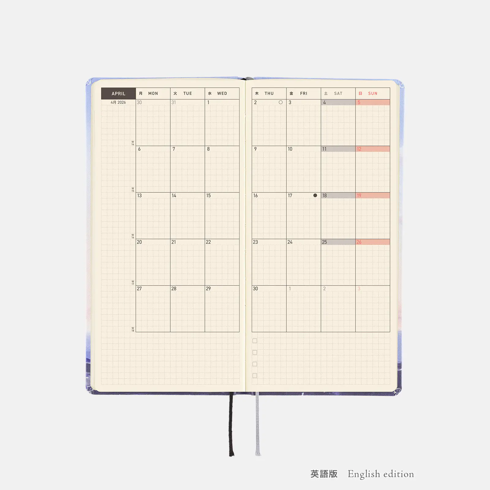 | 紙質・製本 | 薄くて軽く、なめらかな書き心地のトモエリバー(手帳専用紙)/糸かがり製本 |