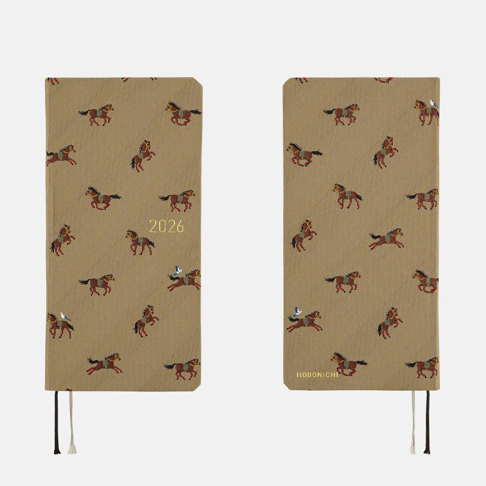 「駆ける馬」の柄では、シックなベージュの表紙に