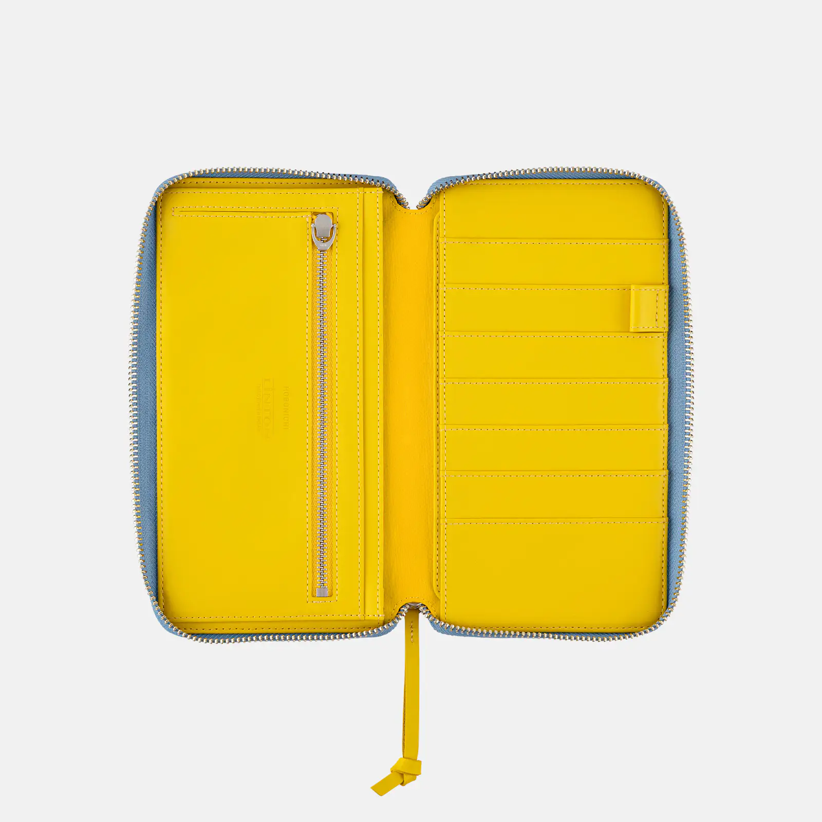 内側は、引き手と同じあざやかな黄色の革。