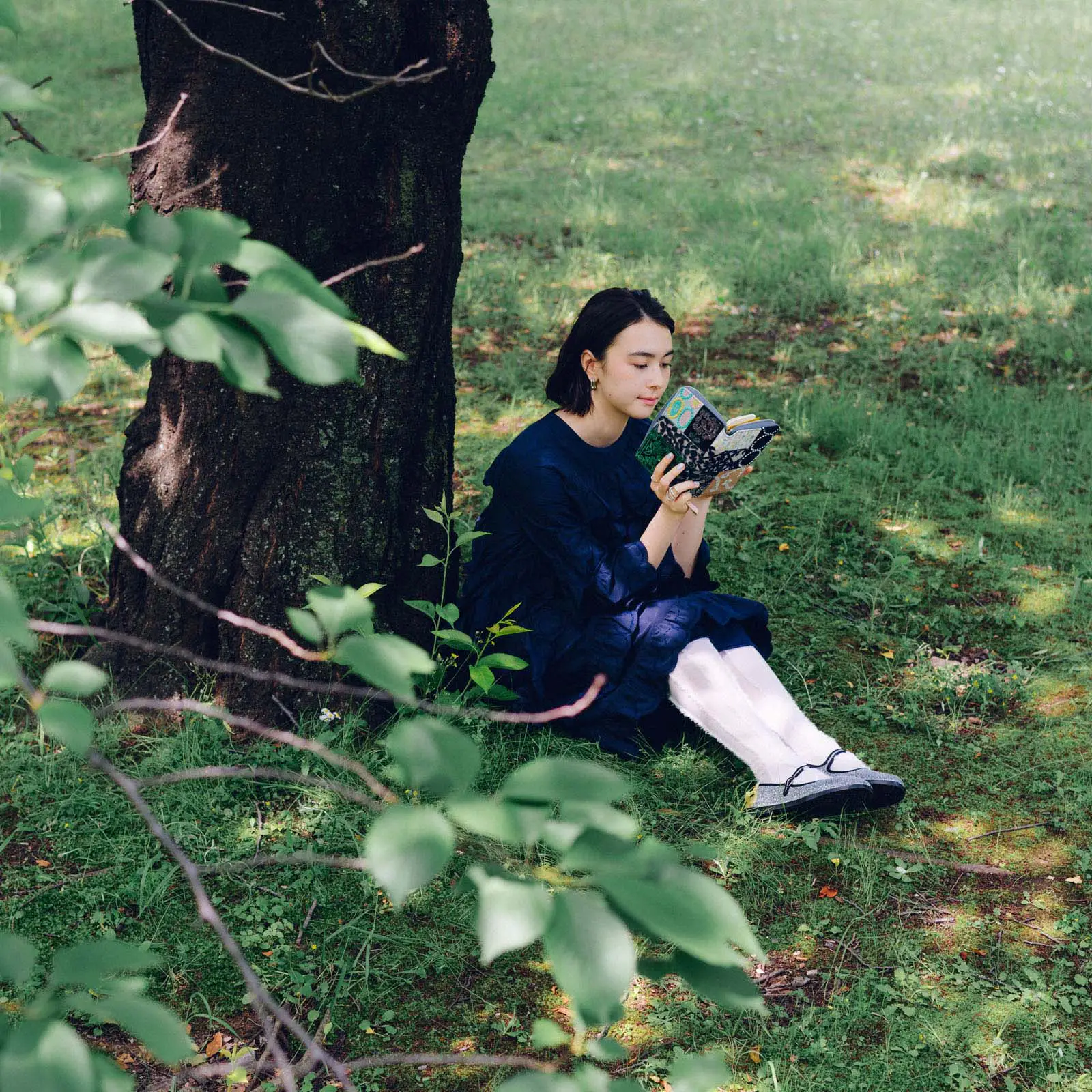 カバーのしおりには、ミナ ペルホネンのオリジナルのレース紐を使用しており、糸のほつれが見られる場合があります。ほつれが気になる場合は無理に引っ張らず、糸の先を紐の編み目にさし込んでお使いください。