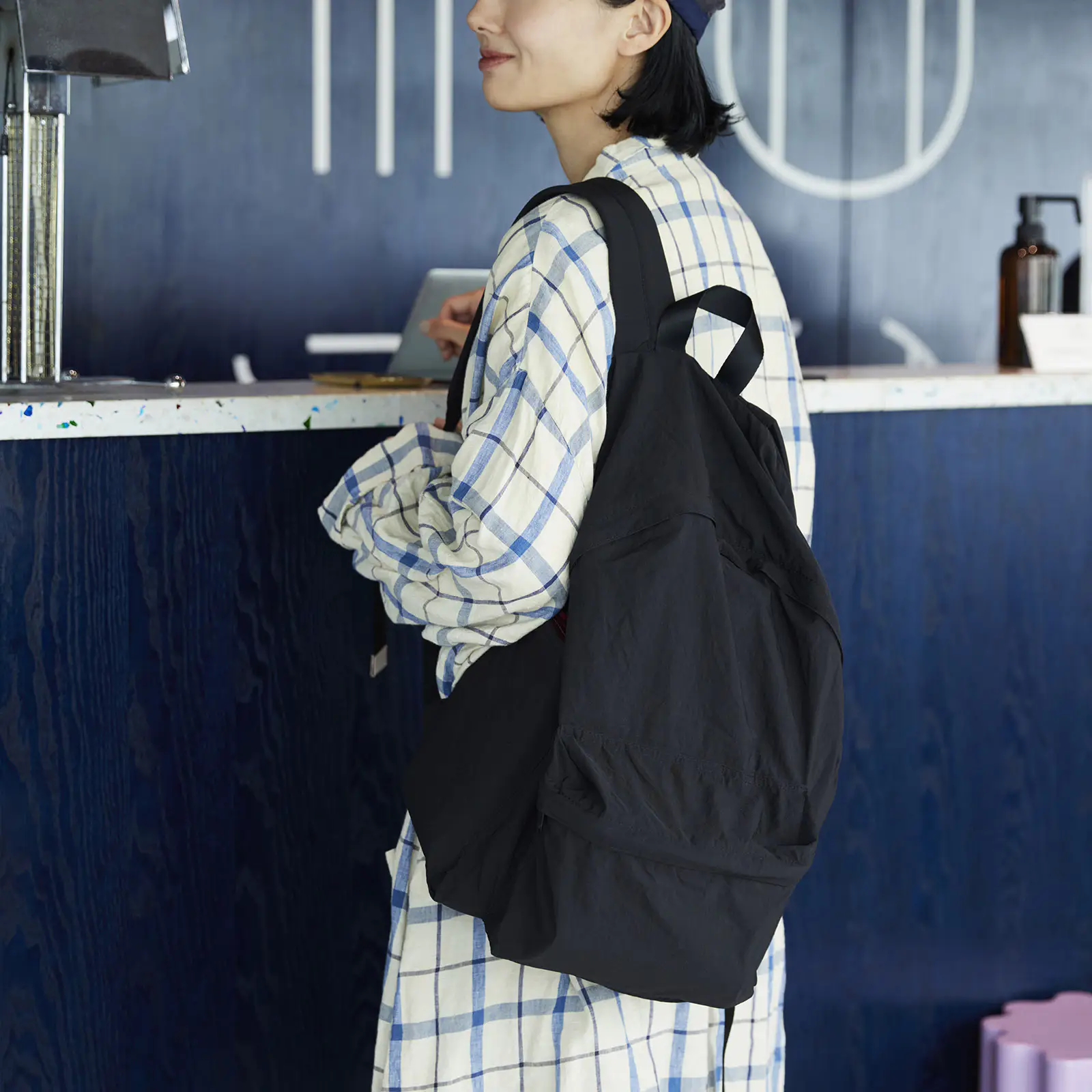 | サイズ | 縦410mm×横310mm×厚さ160mm 前ポケット:縦170mm×横220mm×厚さ50mm 脇ポケット:深さ230mm たたんだ時:縦240mm×横160mm |