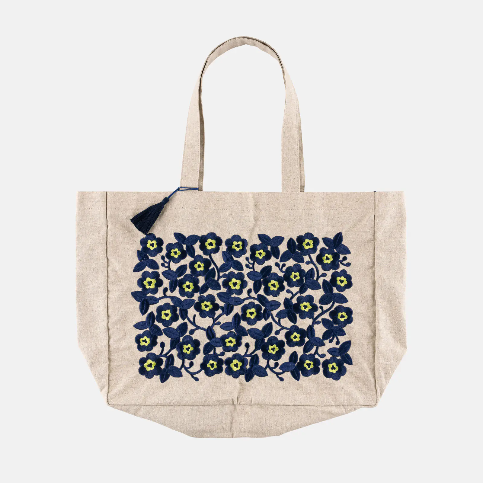 ネイビーと蛍光イエローの糸で刺繍しました。