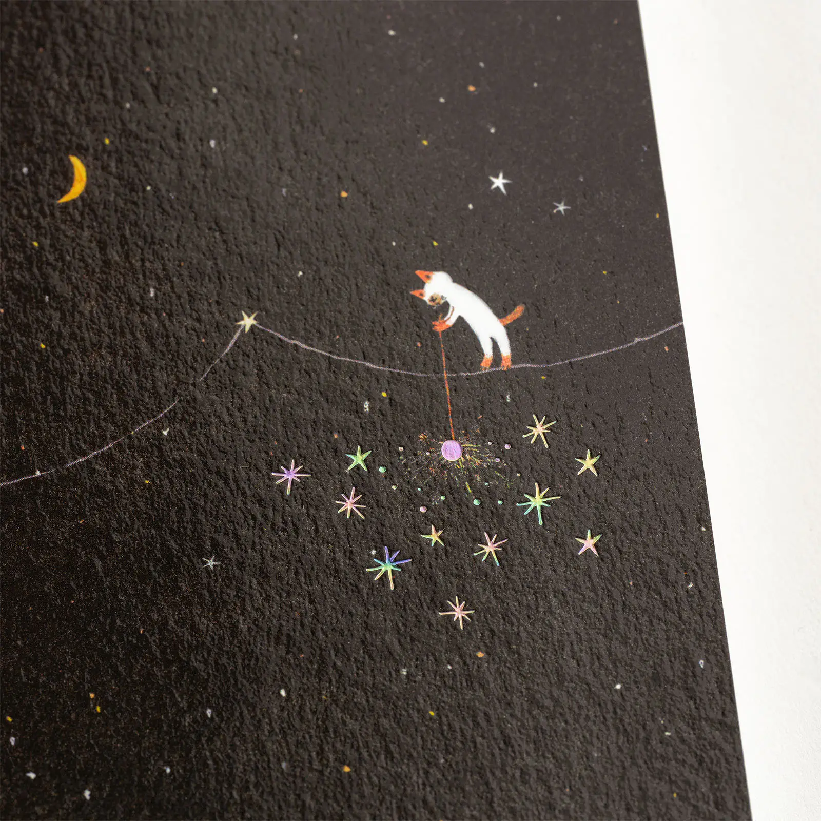 線香花火の火花は、オーロラ箔で表現。