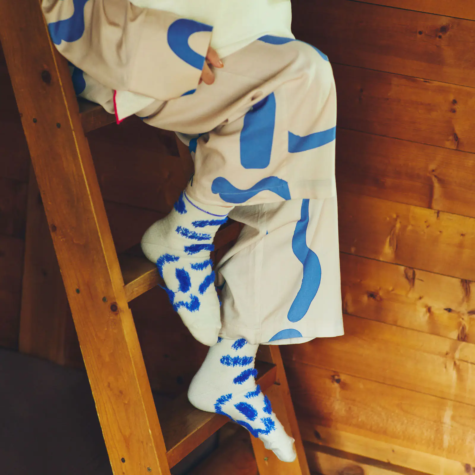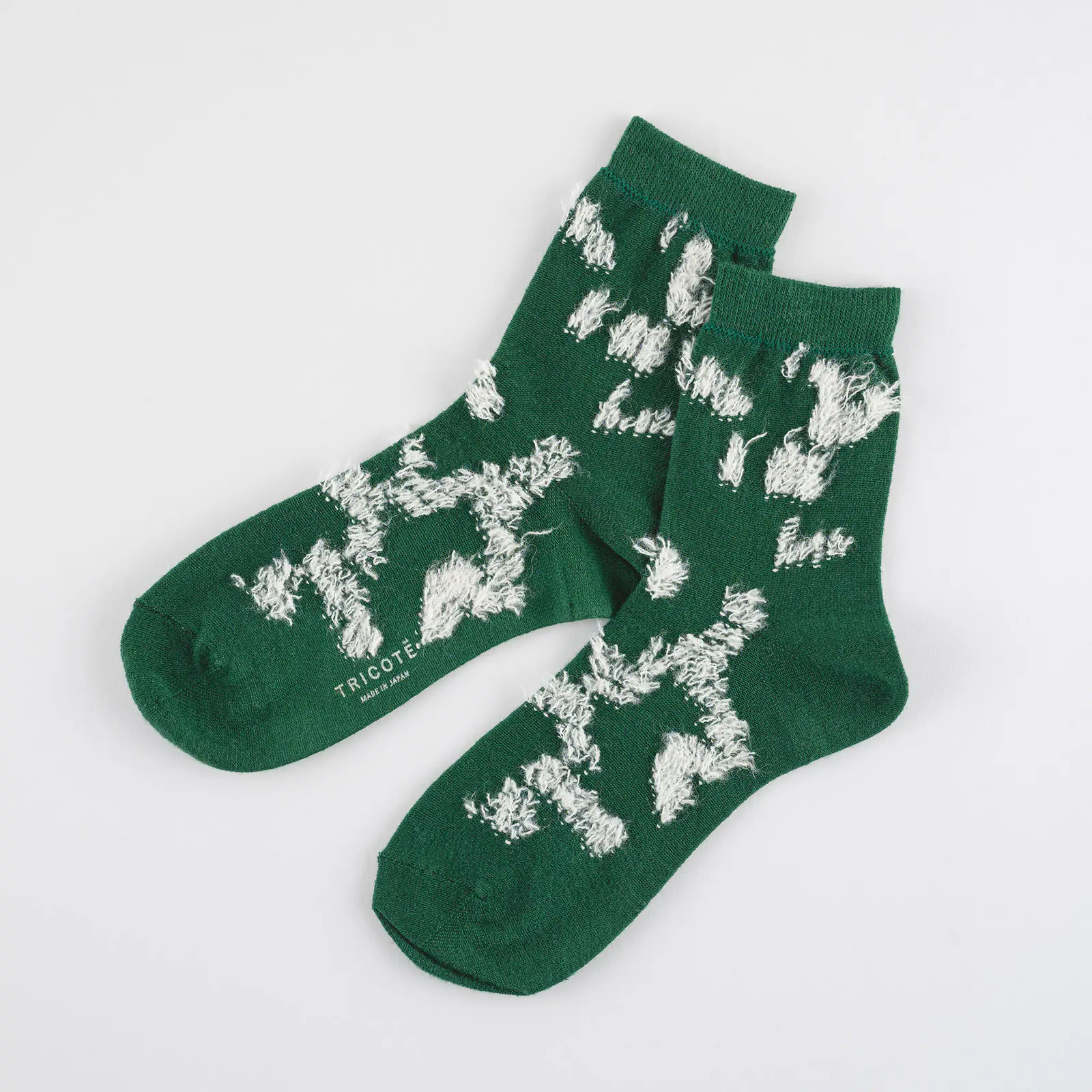 編み地を利用し、質感が違う糸で柄を表現しました。
