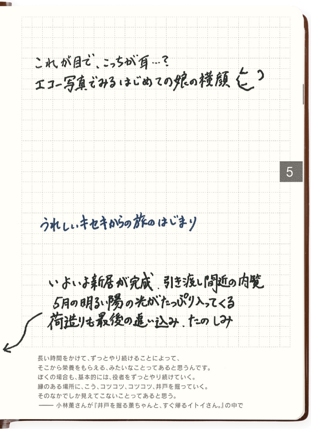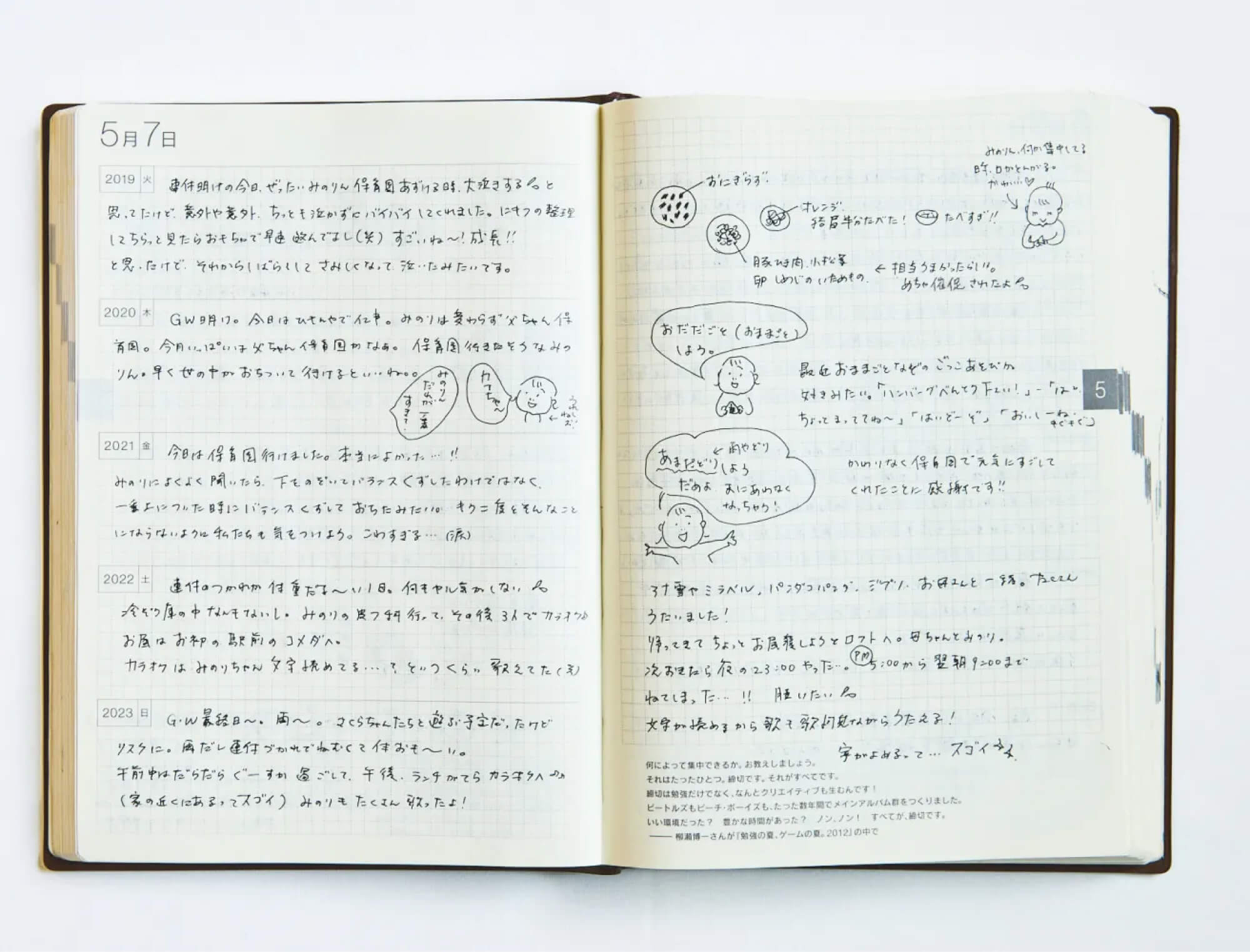 子どものことを中心にした育児日記。「おおきいほぼ日5年手帳」はスペースをふんだんに使えるので、読み返しやすいメリットも。